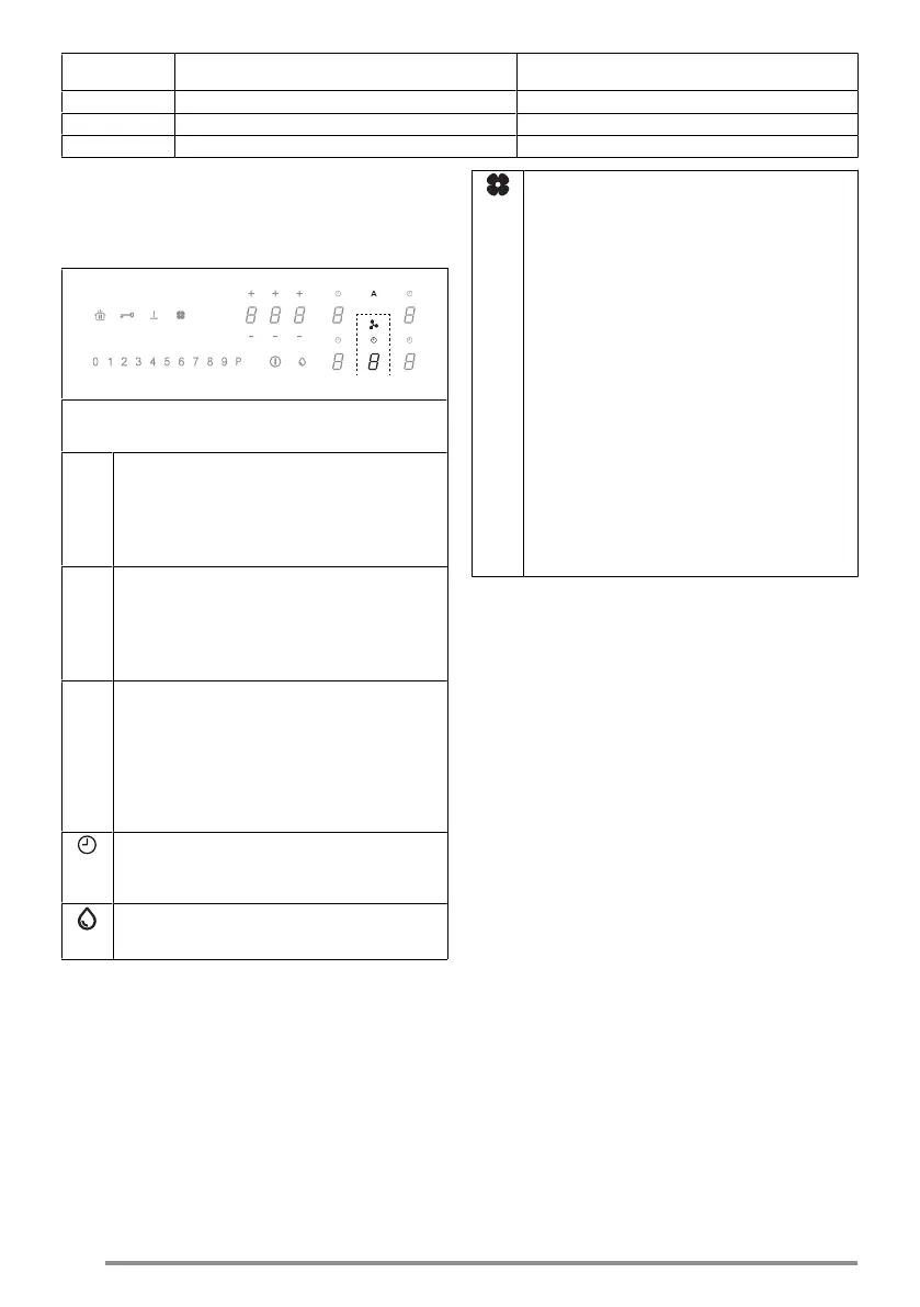Die Bedienungselemente der Kochbereiche, der Abzugs-