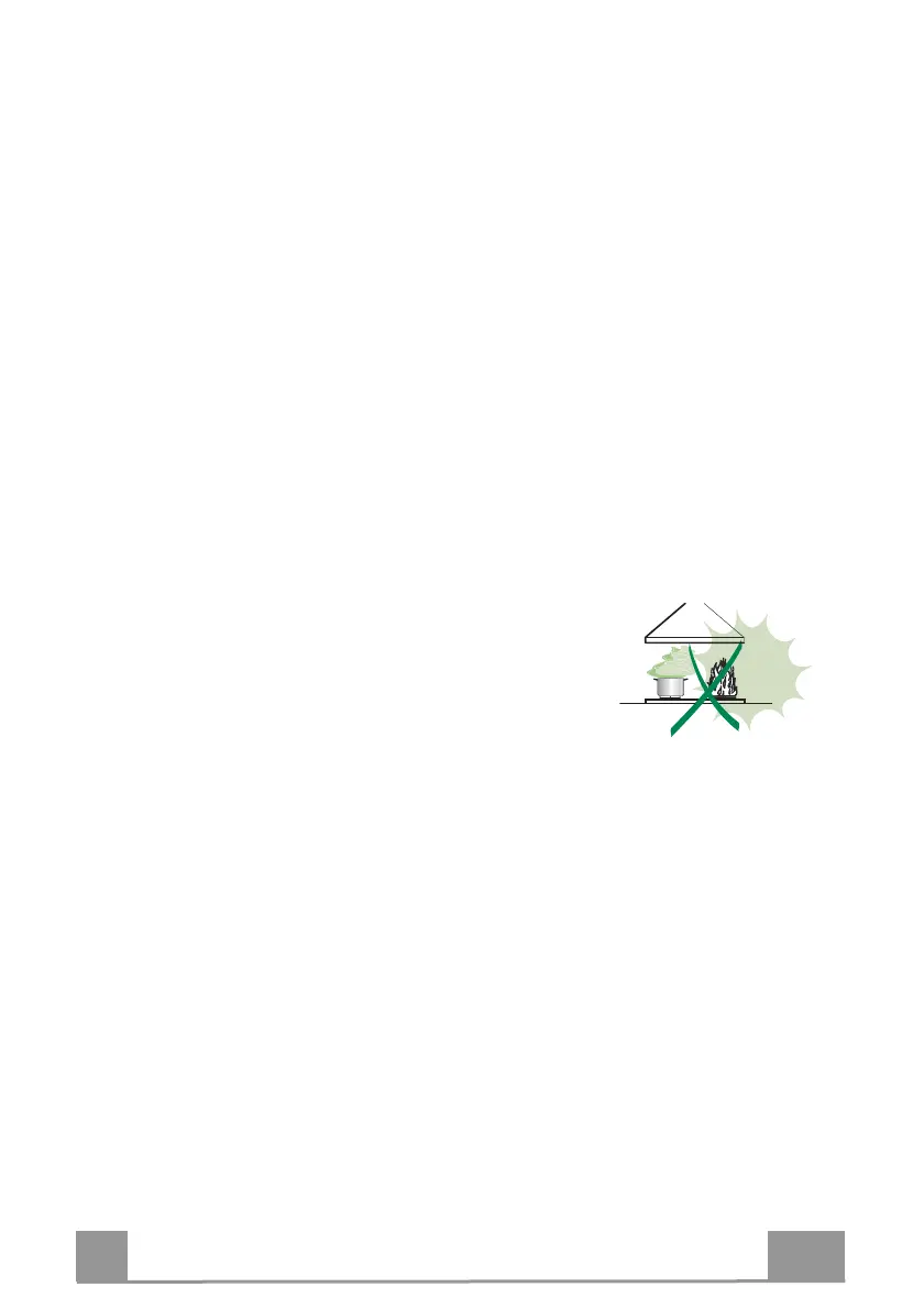 • Unter der eingeschalteten Haube keine offenen Flammen benutzen.