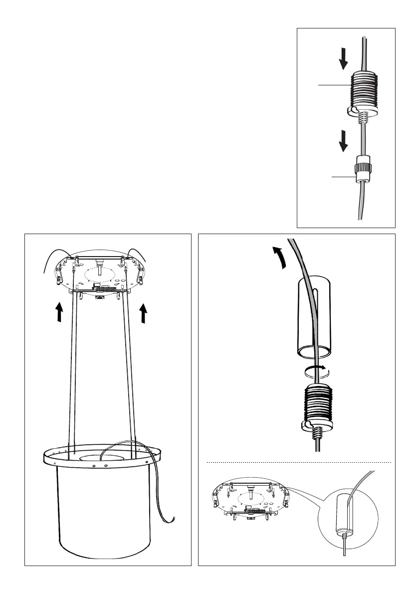 • Faites passer les câbles dans les boutons de sécurité (c) en vous as-