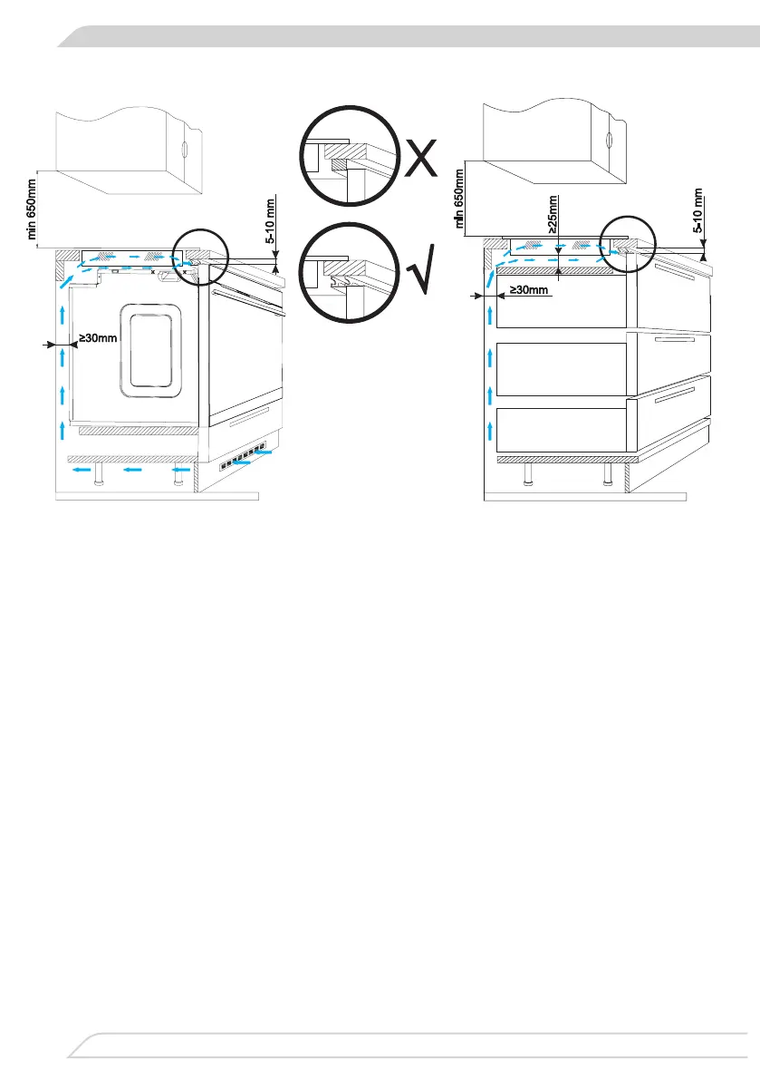 It is forbidden to mount the hob above an oven without ventilation. When installing the hob in