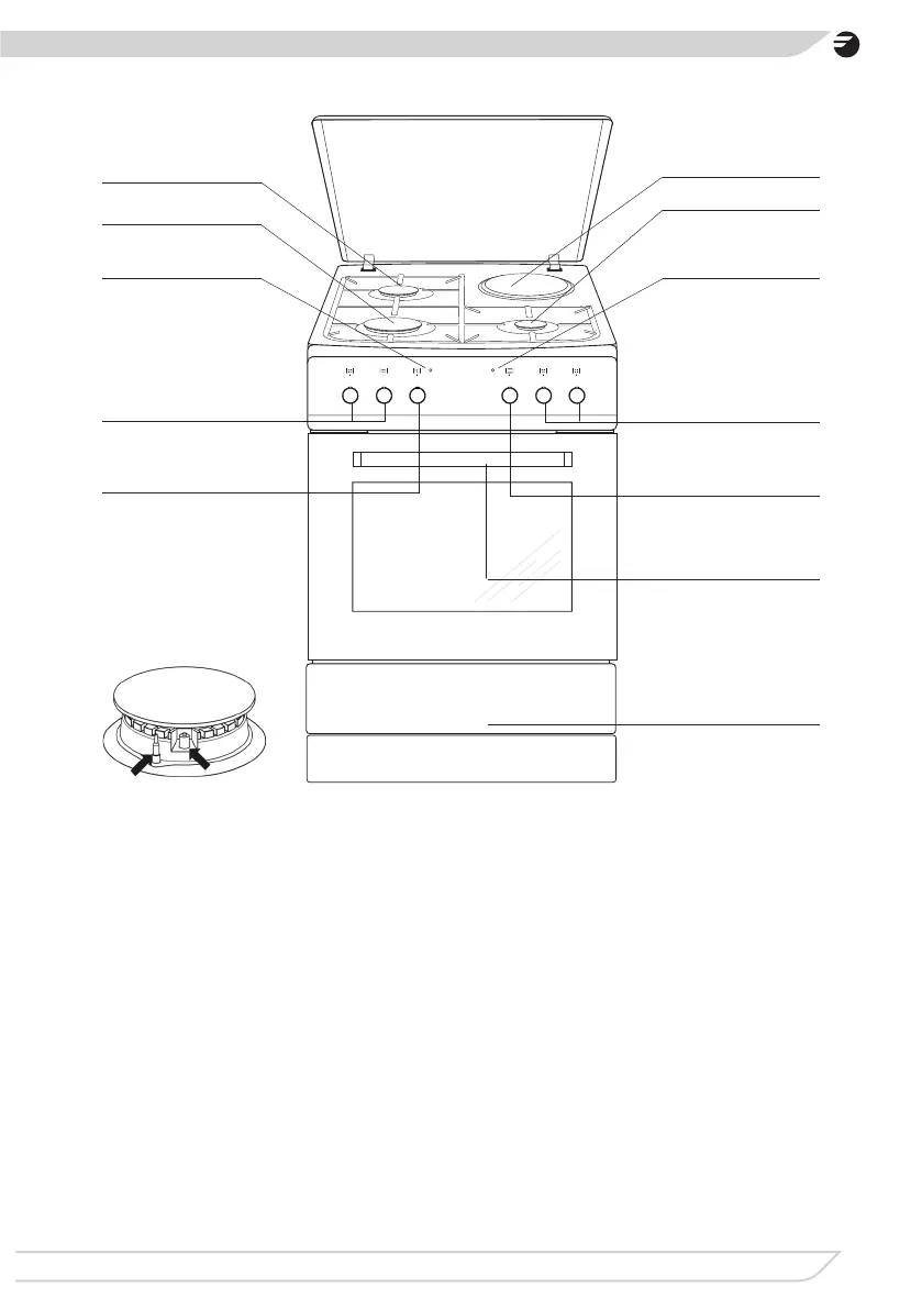 3, 4, 5, 6: Draaiknoppen voor de bediening van de gasbranders