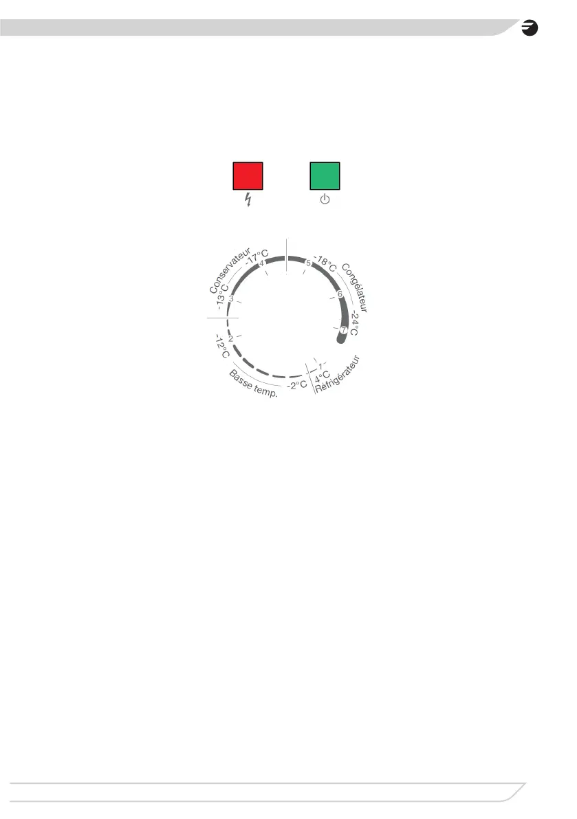 Attention : le réglage du thermostat sur Min÷ 1 entraîne l’activation de la fonction de réfrigéra-