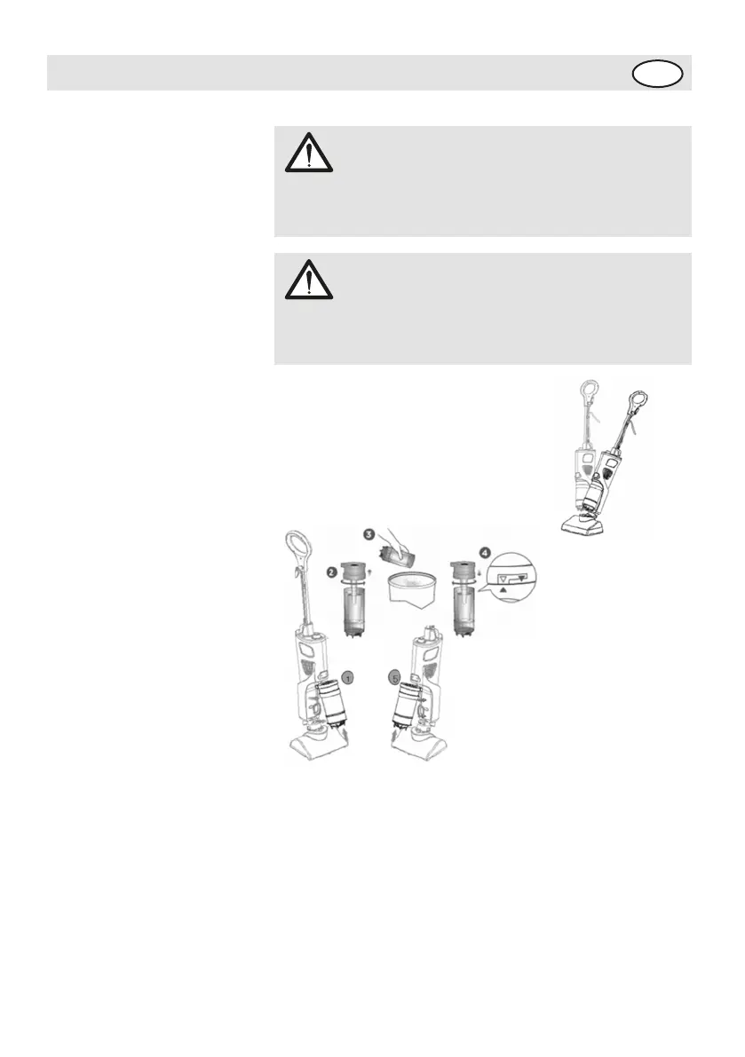 5- Toz tankını cihaza yerleştirmek için önce yukarı tarafını