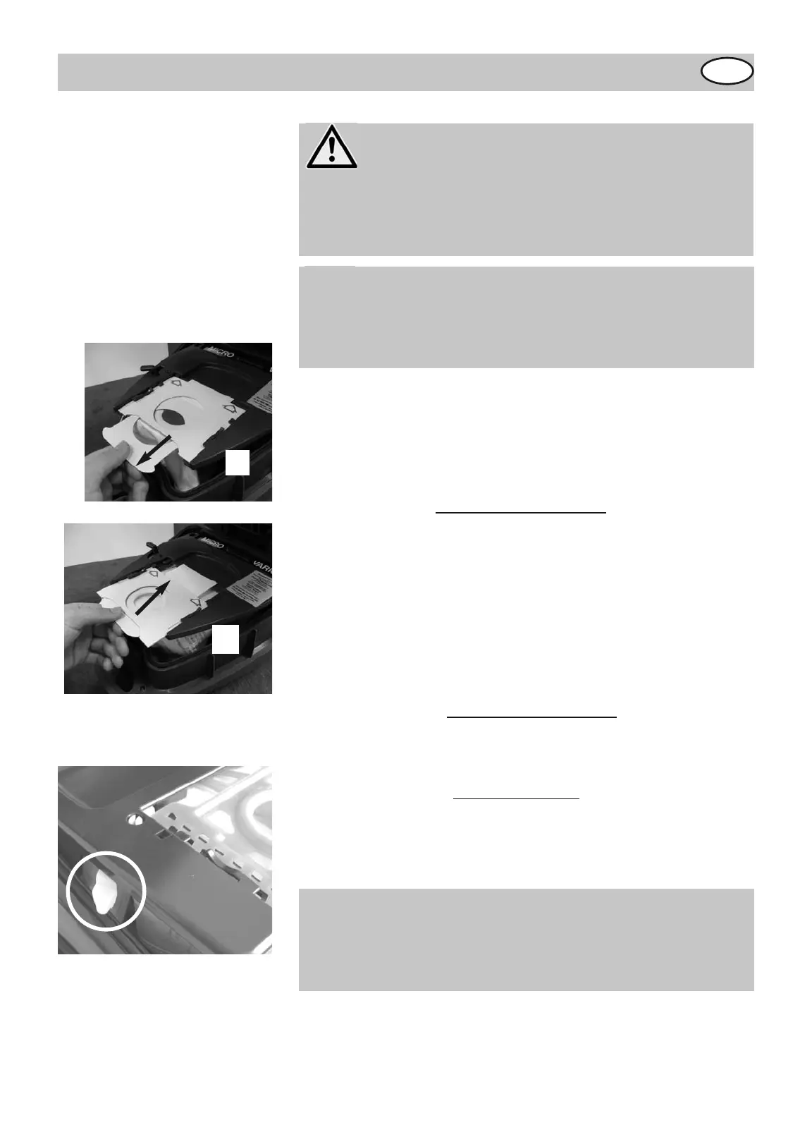 ● Stecken Sie den neuen Staubbeutel ganz ein und schlie-
