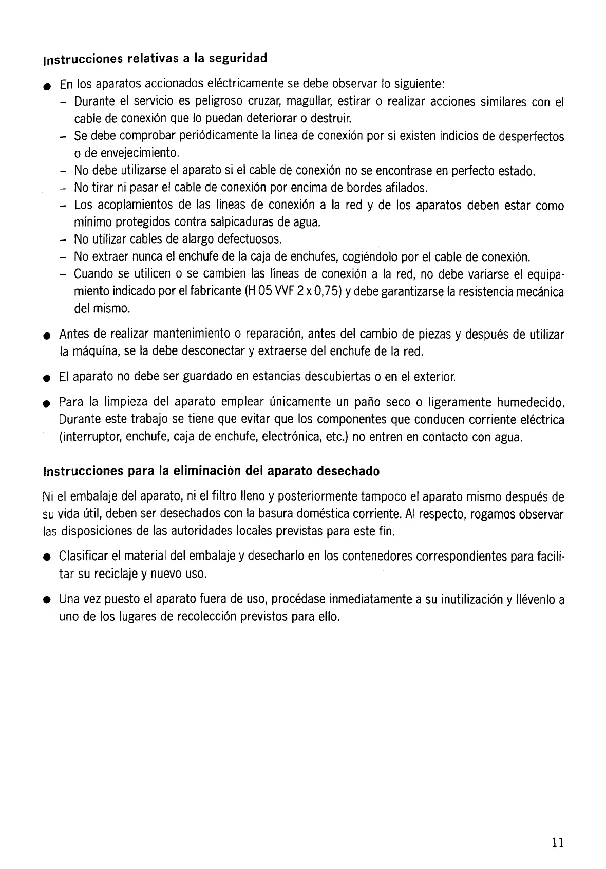 Ni el embalaje dei aparato, ni el filtro Ileno y posteriormente tampoco el aparato mismo despues de