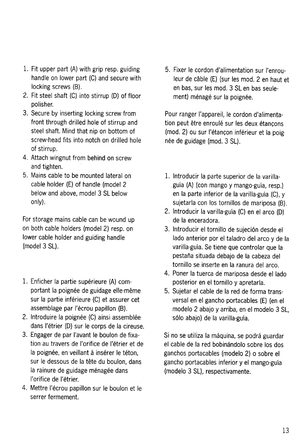dans I'etrier (D) sur le corps de Ja cireuse.