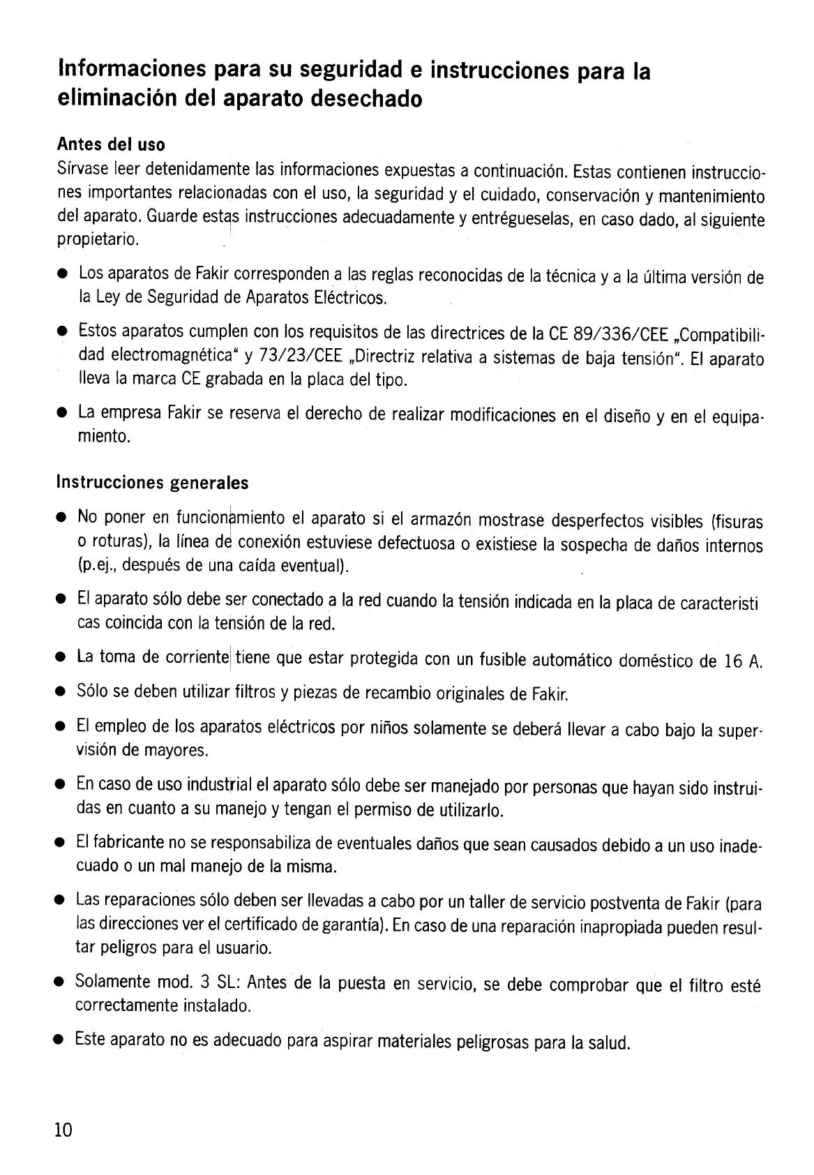.Solo se deben utililar filtros y pielas de recambio originales de Fakir.