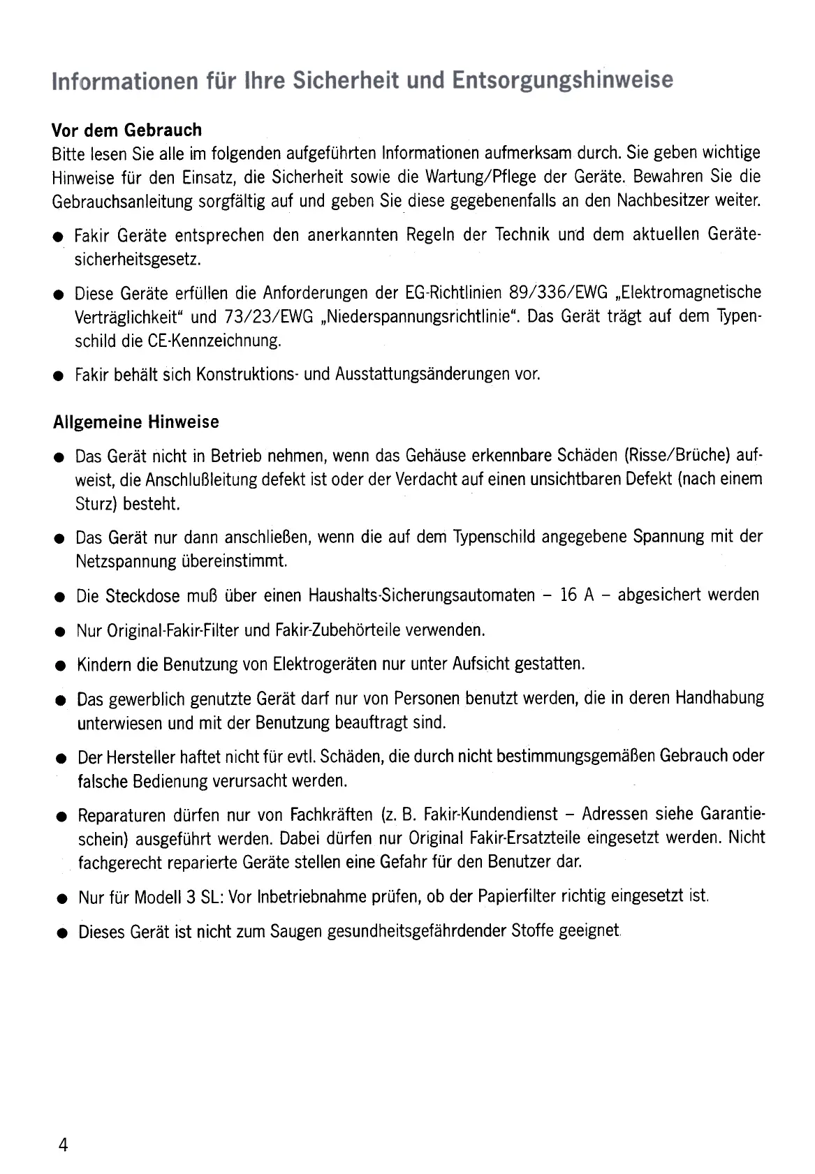schein) ausgeführt werden. Dabei dürfen nur Original Fakir-Ersatzteile eingesetzt werden. Nicht