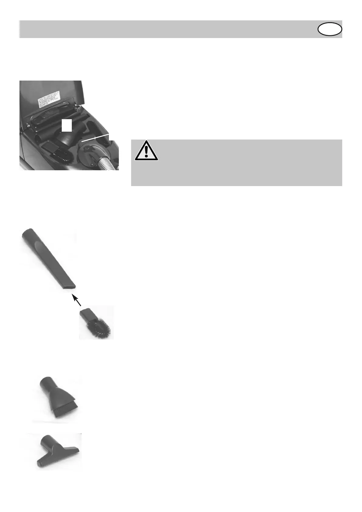 furniture brush and upholstery nozzle) can be stored in the