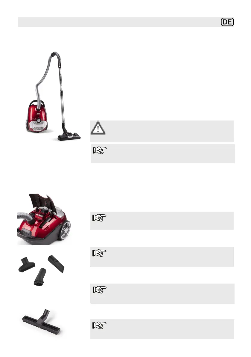 bürste verstaut. Polster- und Hartbodendüse liegen