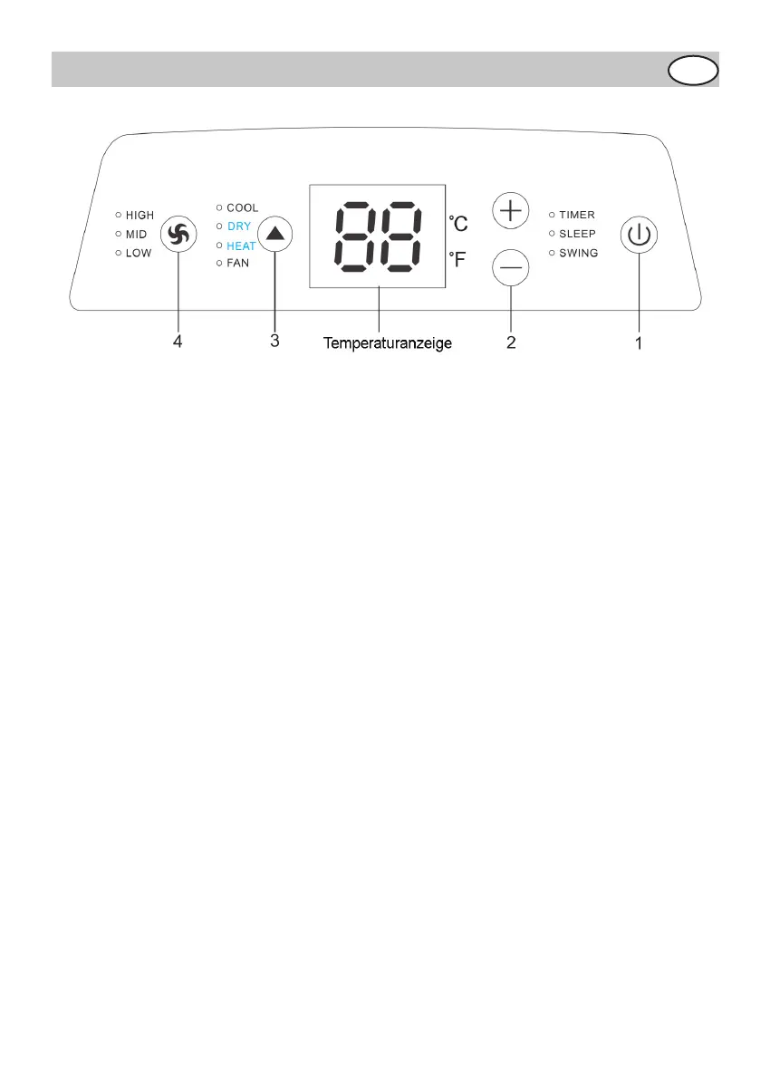 ten Kühlen (COOL), Entfeuchten (DRY), Heizen (HEAT)