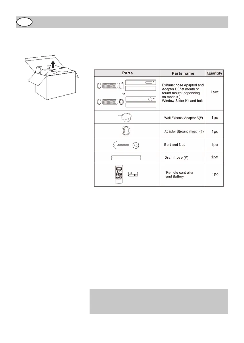 Unpack the Air Conditioner and check the contents for