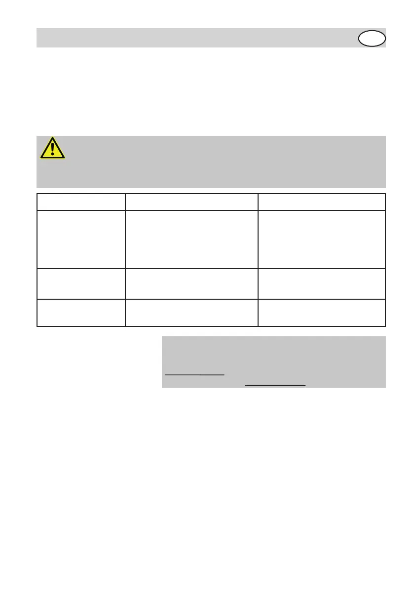 Switch off and unplug the appliance before beginning troubleshooting.