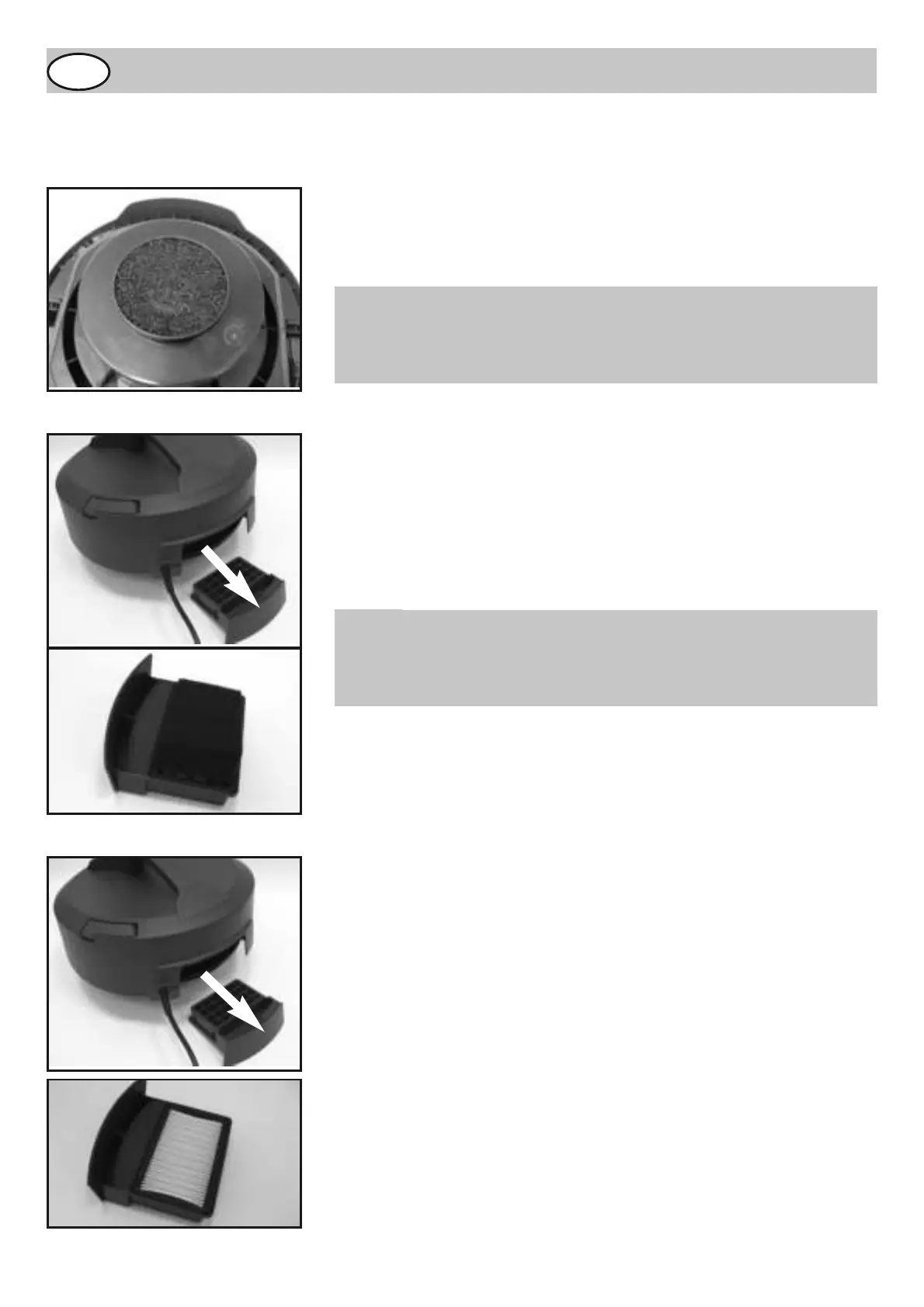 ● Remove the Motorhead. Pull out the HEPA-Filter and re-