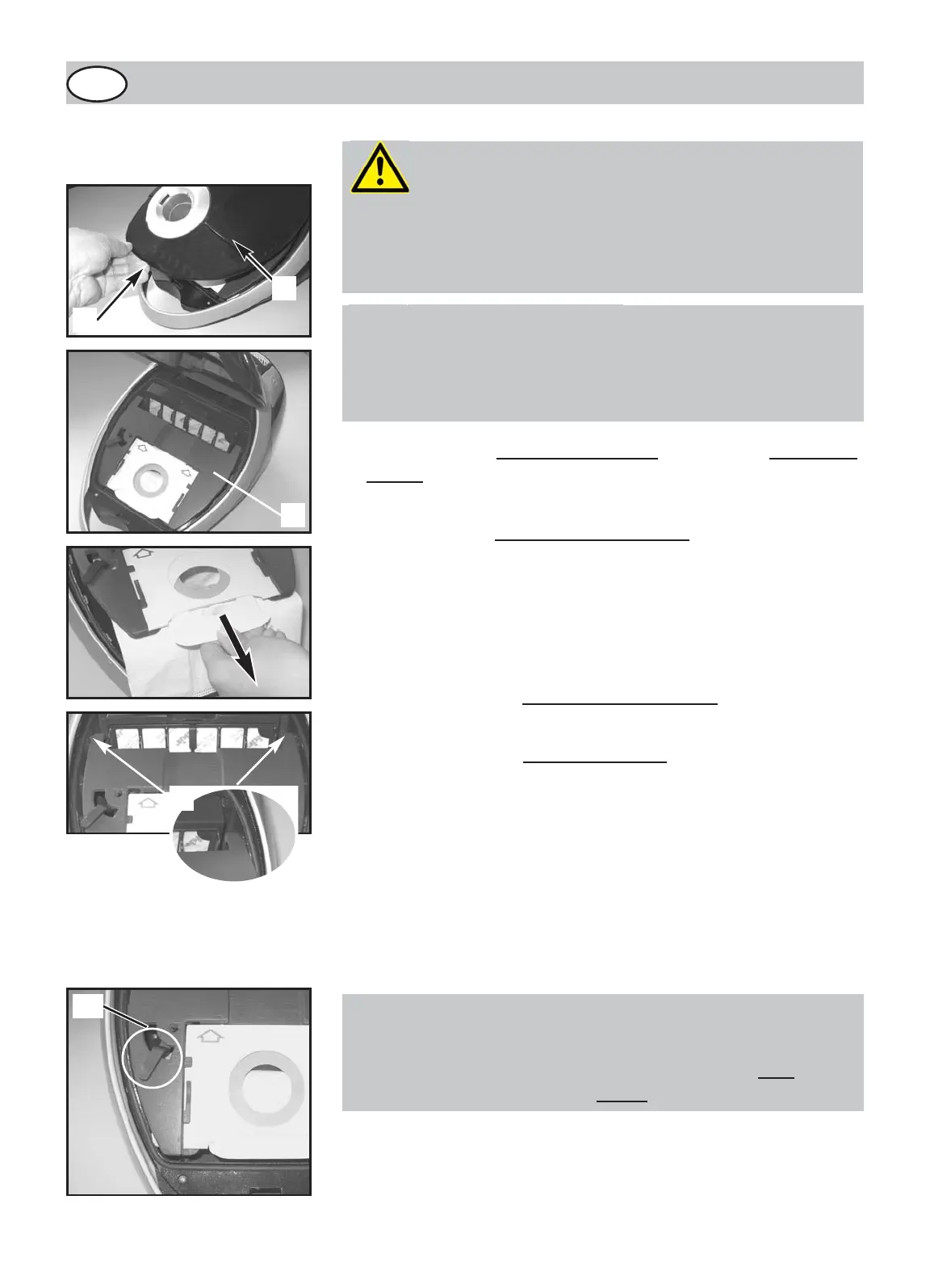 ● Stecken Sie den neuen Staubbeutel ganz ein und schlie-