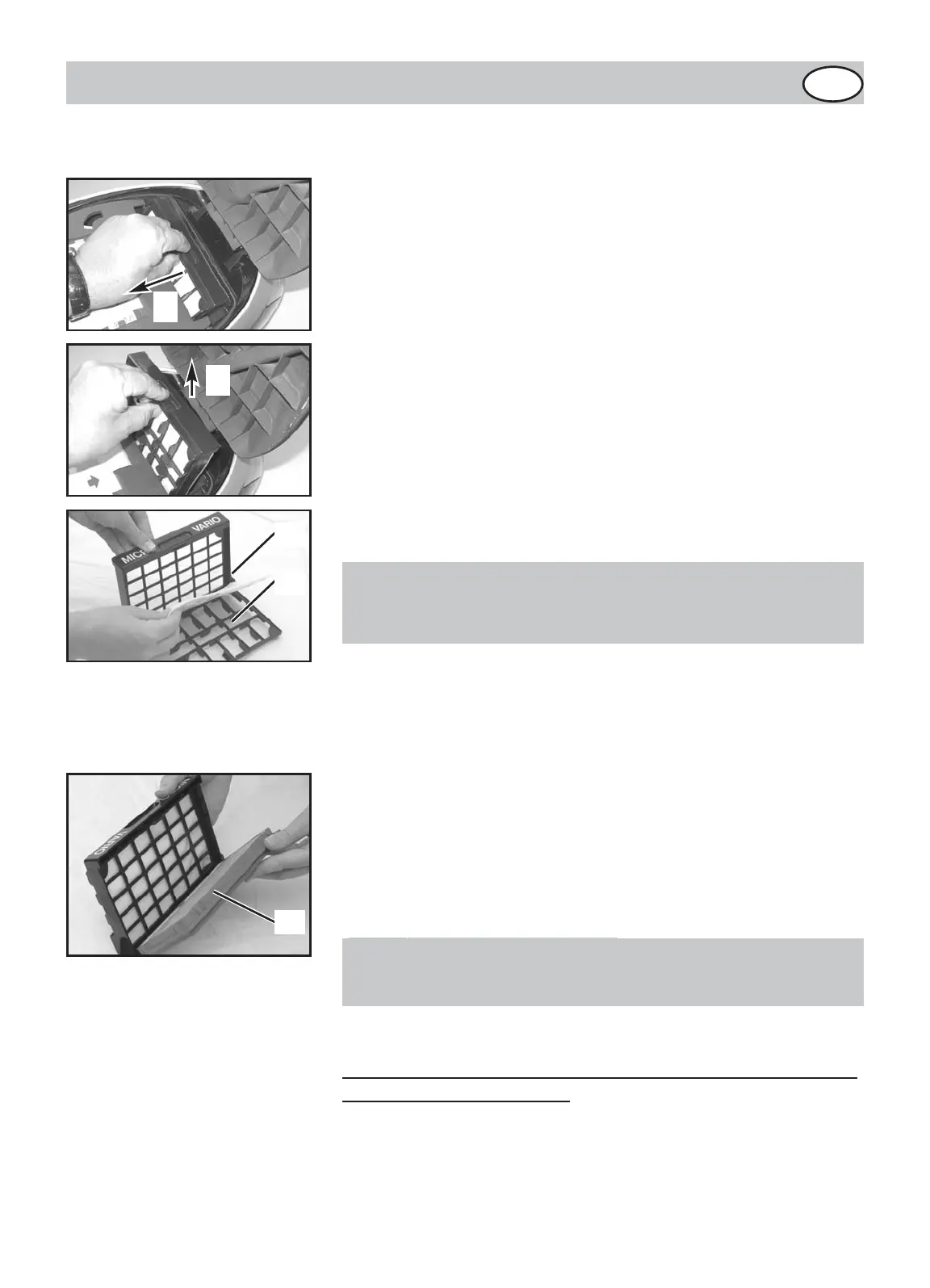 Öffnen Sie den Filterraum wie im Kapitel “Staubbeutel wech-