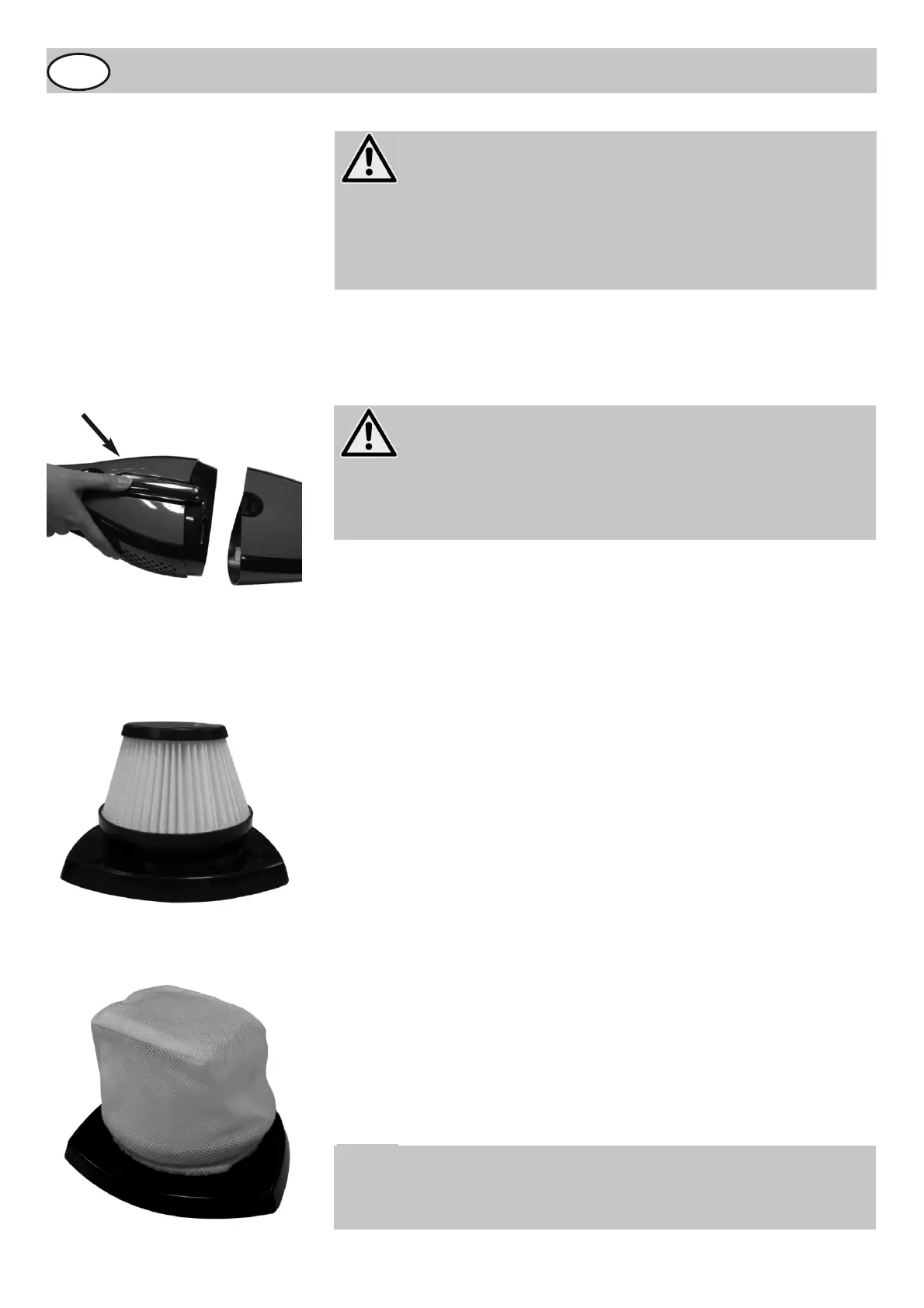 Staubbehälter vollständig trocken sind. Trocknen Sie Filter