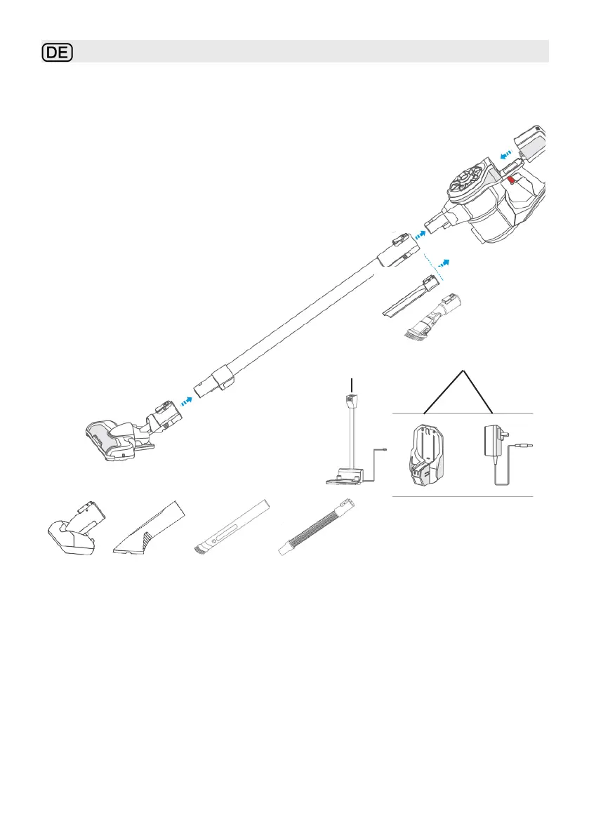 Tipp : Das Zubehör kann mit dem Saugrohr / Teleskoprohr* verbunden werden,