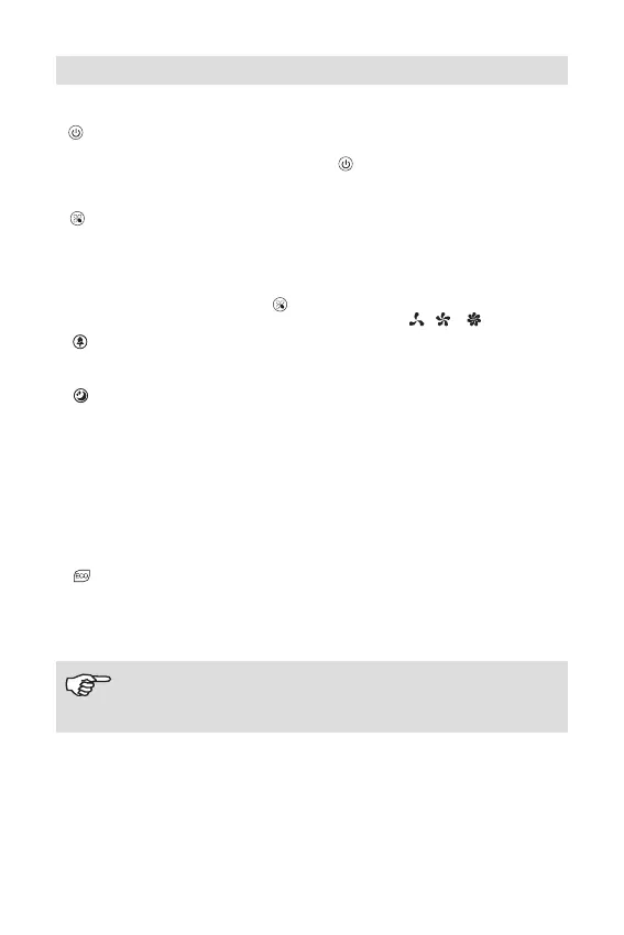 Diğer modlar (Doğal esinti, Uyku ve Eco enerji ) ön panelde mevcuttur. Diğer