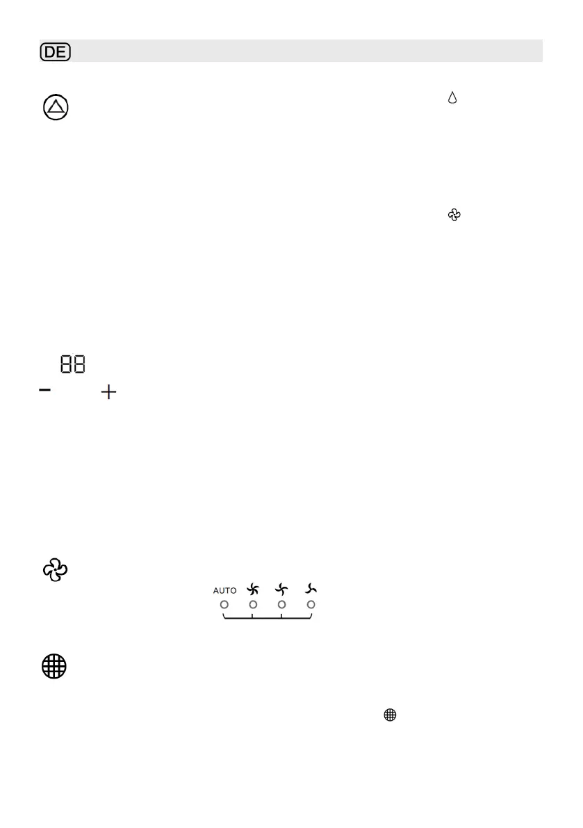 - Im Entfeuchtungs- und Ventilatormodus erscheint