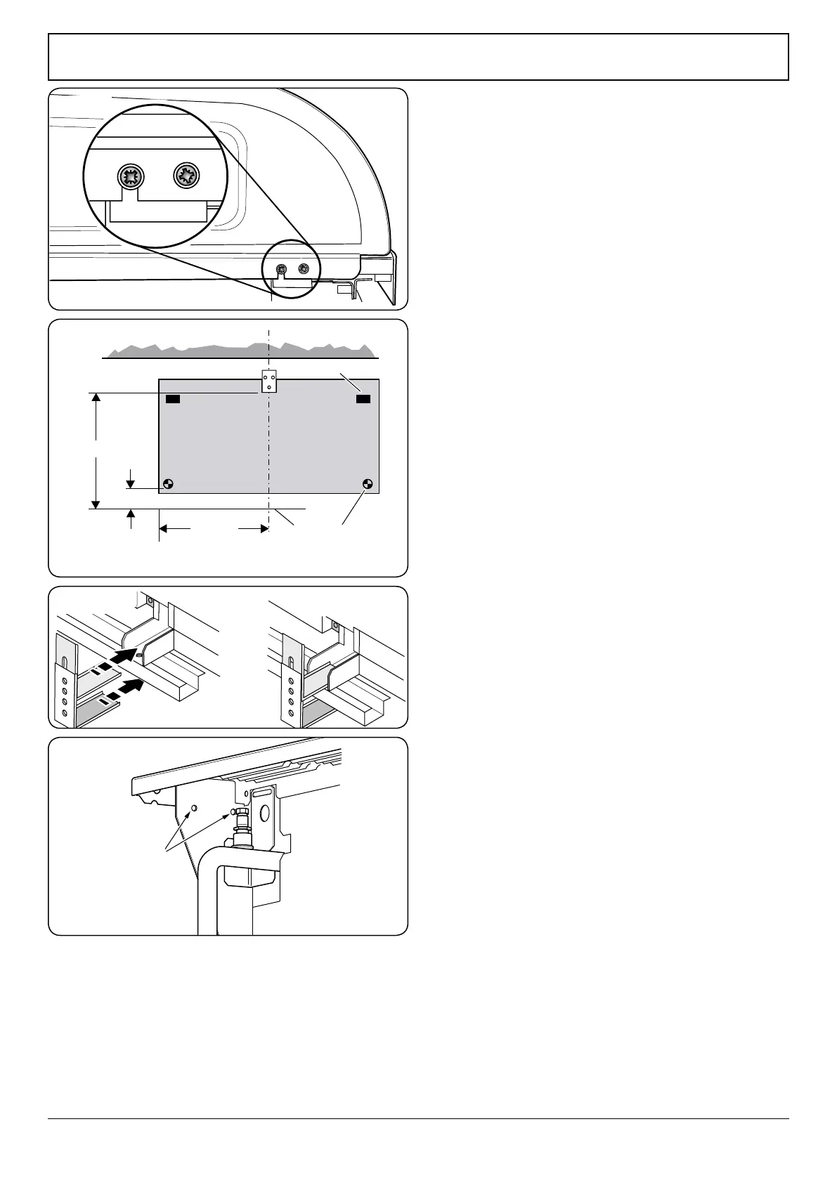 A - Levelling rollers, B - Levelling feet, C - Wall face,