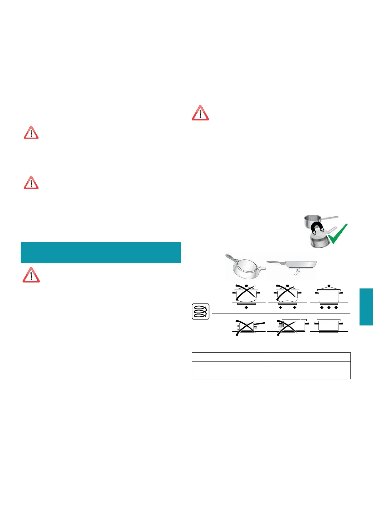 • Gebruik alleen potten en pannen met een gladde, magnetische bodem,