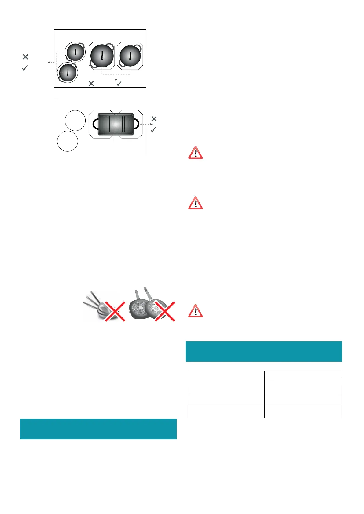 Gebruik nooit twee potten of pannen tegelijk op één enkele kookzone, op
