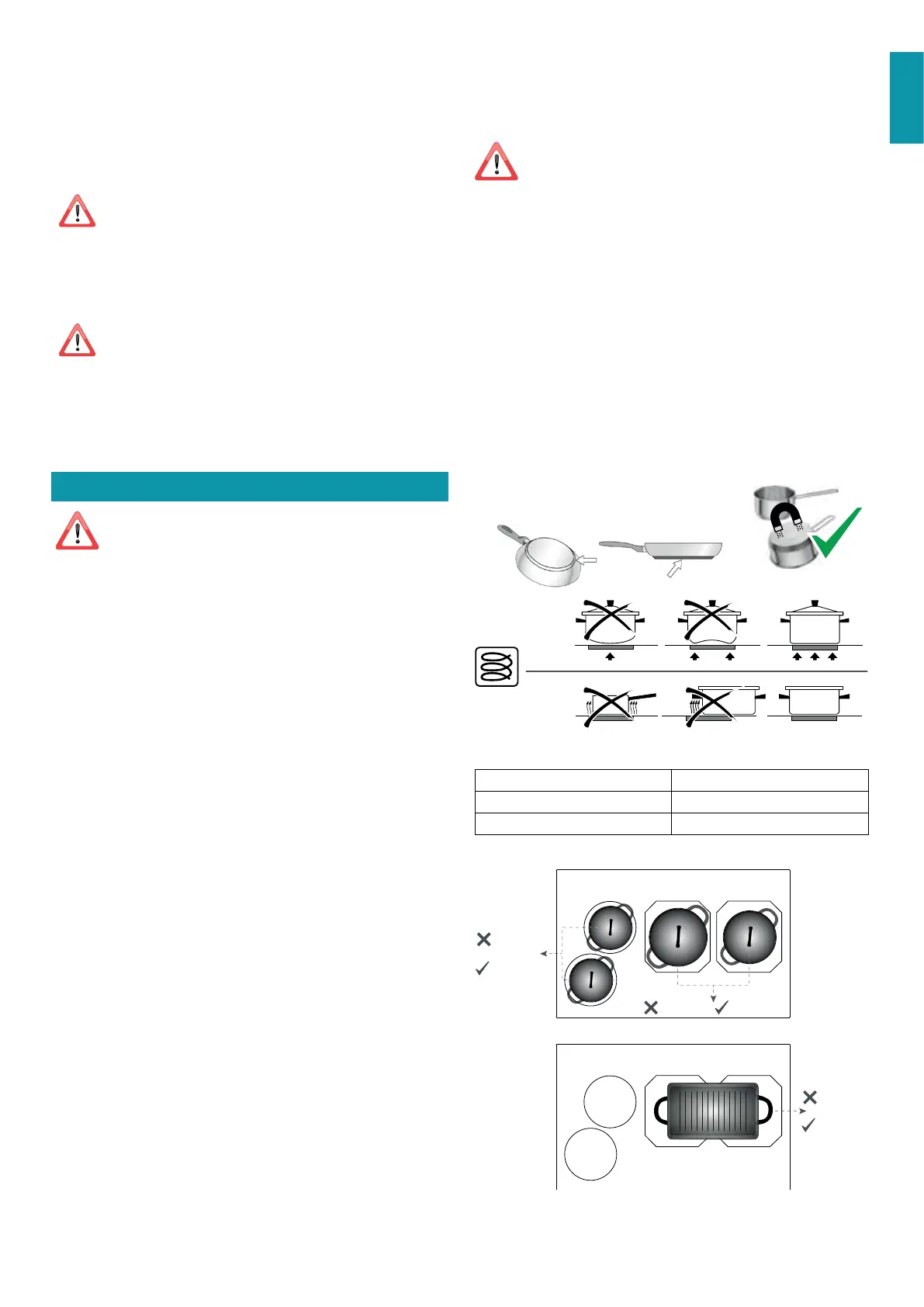 • Usare solo pentole e padelle a fondo liscio e magnetico idonee per piani