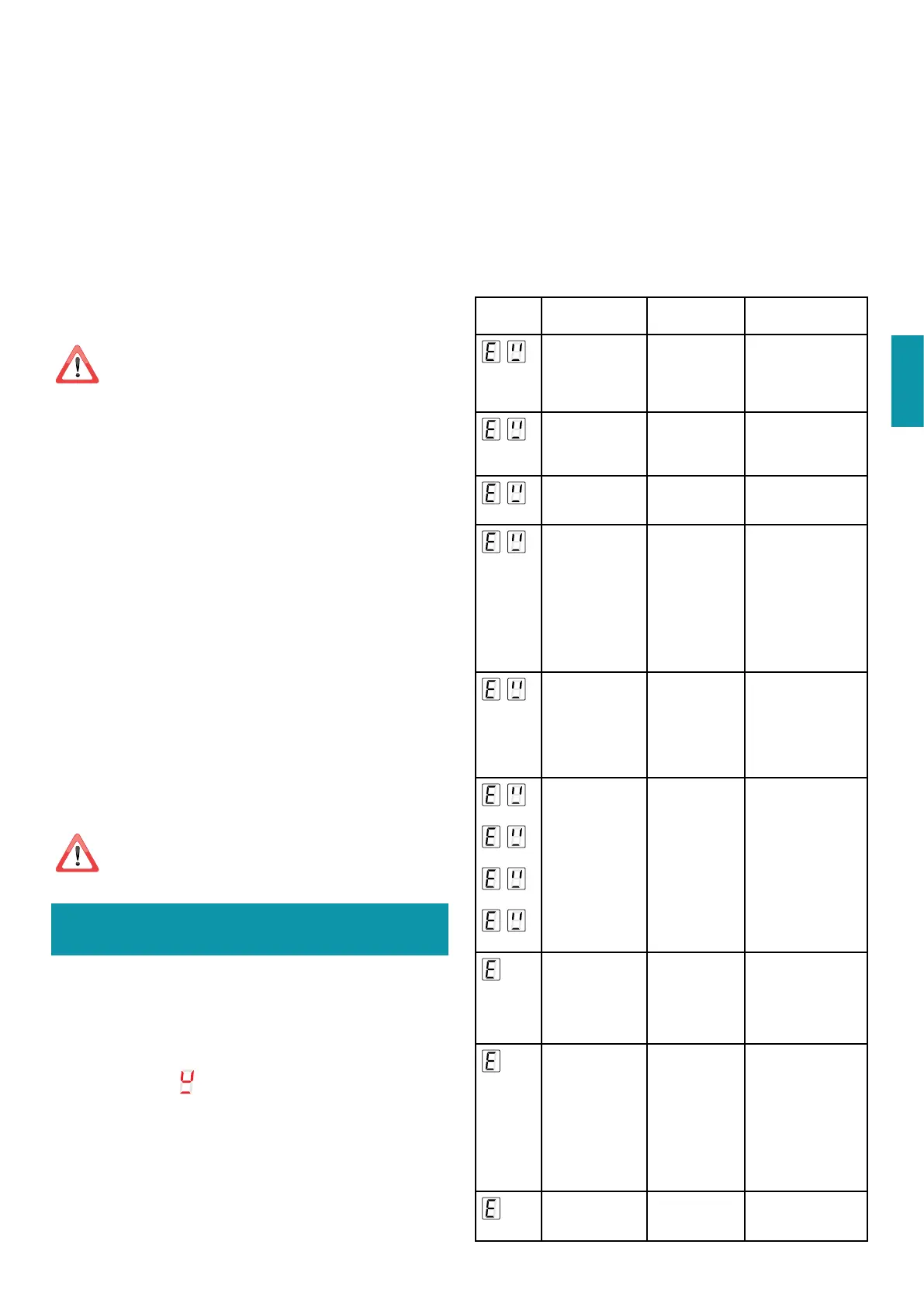 En cas d'erreur, le dispositif ache les codes d'erreur à des ns d’assistance.
