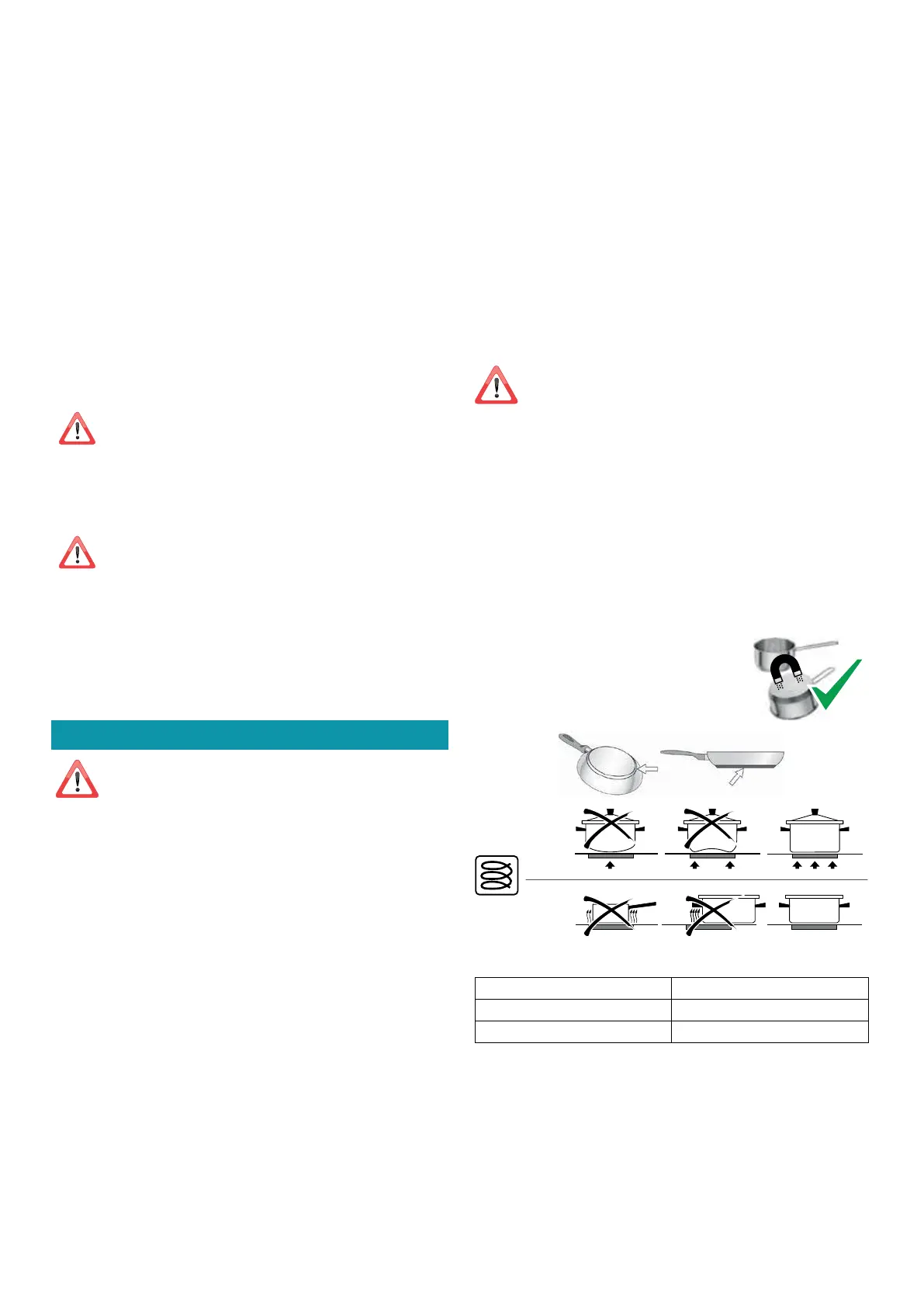 • Der må ikke monteres nogen form for tildækning af induktionskoge-