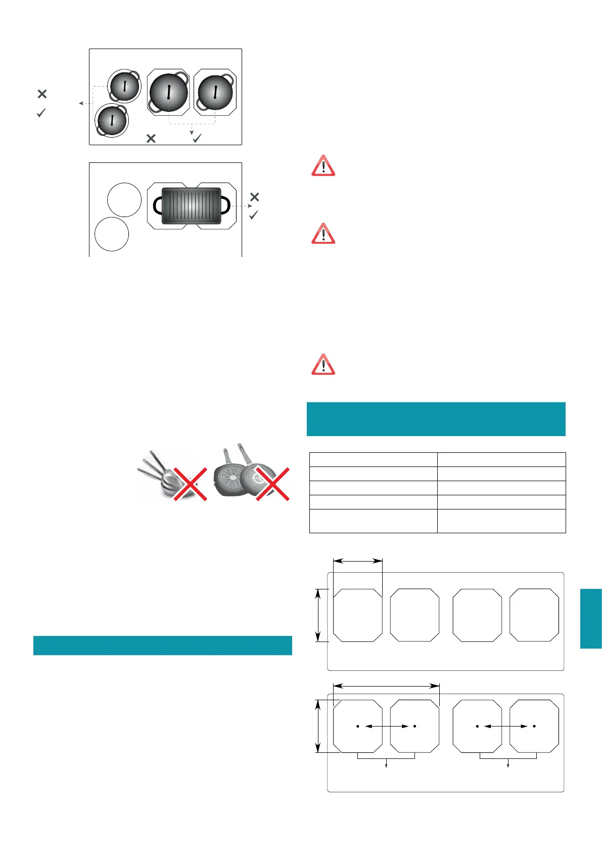 Brug aldrig to gryder eller pander samtidig på et enkelt kogeområde, et