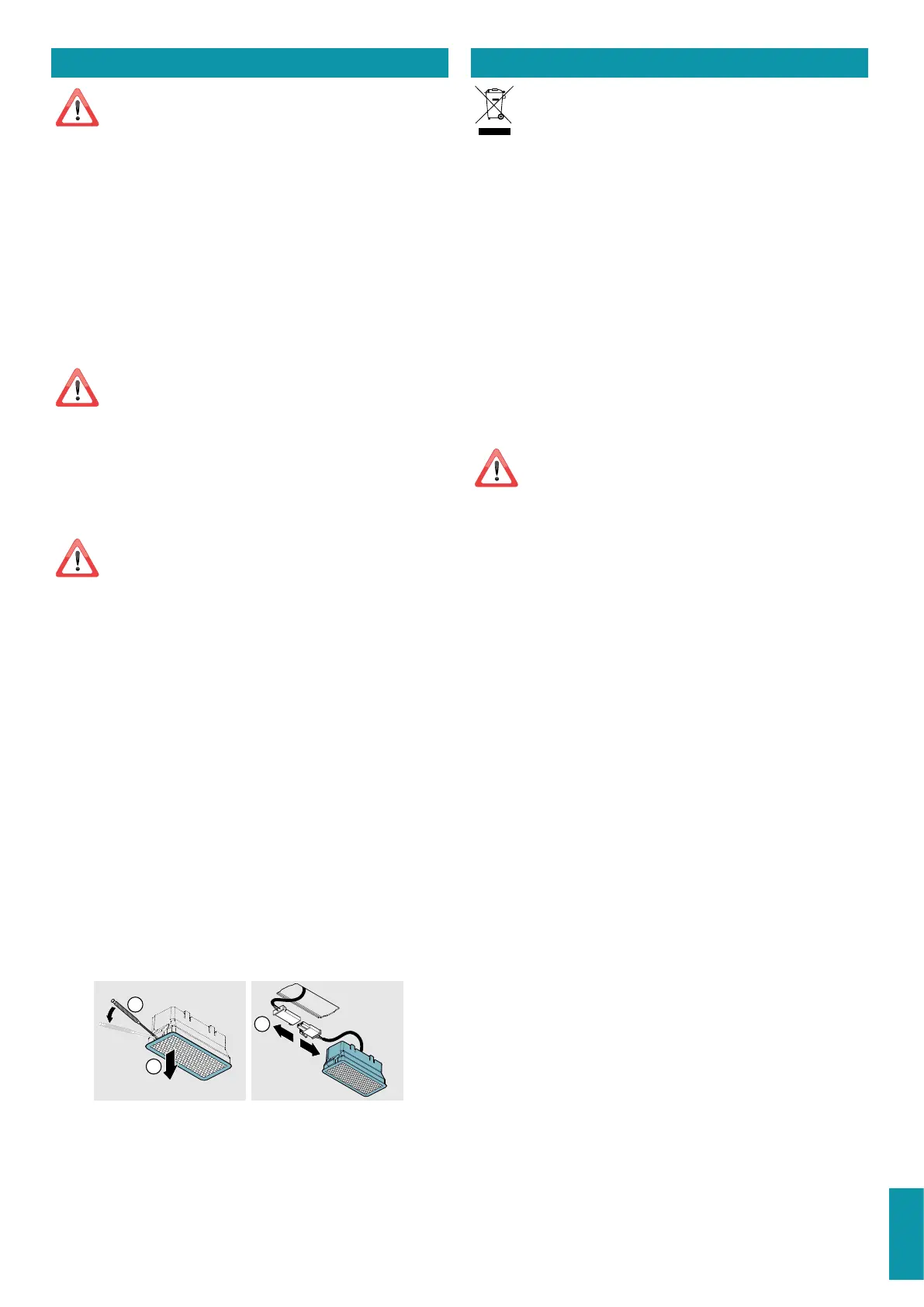 For uttrekking og innsetting av fettmetallfiltrene, se montasjeanvisningene.