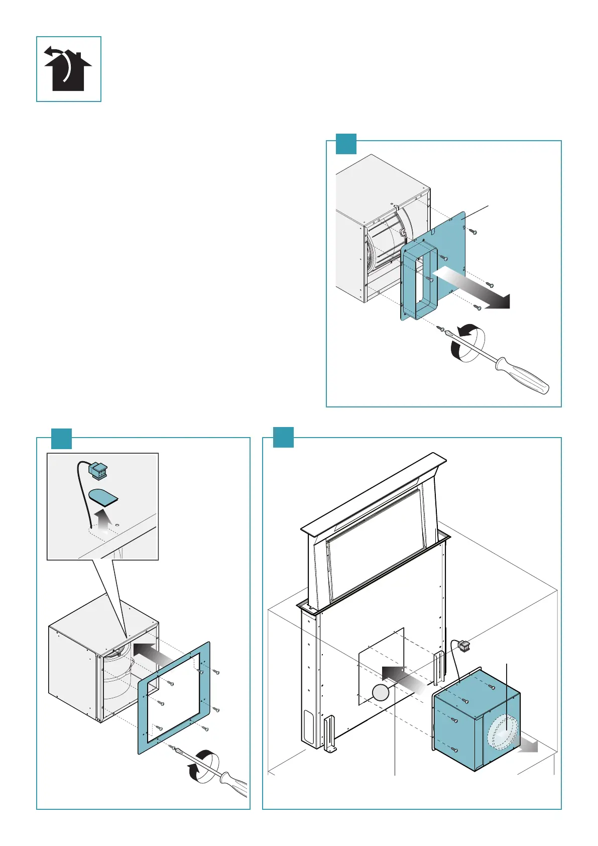 (16), zamocować silnik na okapie, jeśli wylot powietrza znajduje się w części