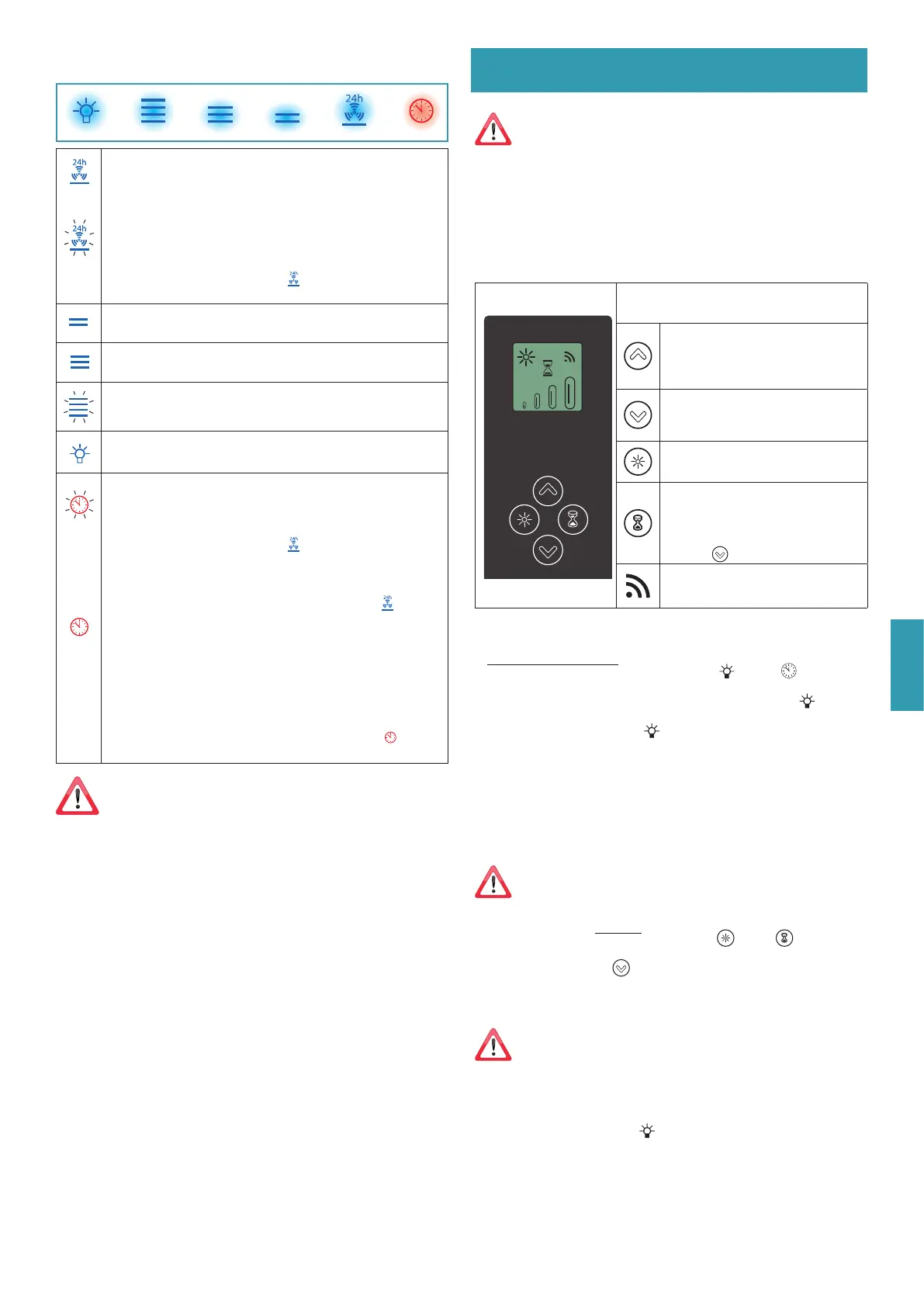 • Zwolnić oba przyciski i nacisnąć jeszcze przycisk OŚWIETLENIE ( ), aż zapalą