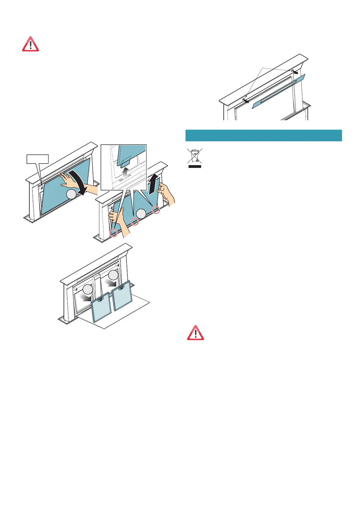 Para a extração e a inserção dos filtros metálicos antigordura ver as instruções