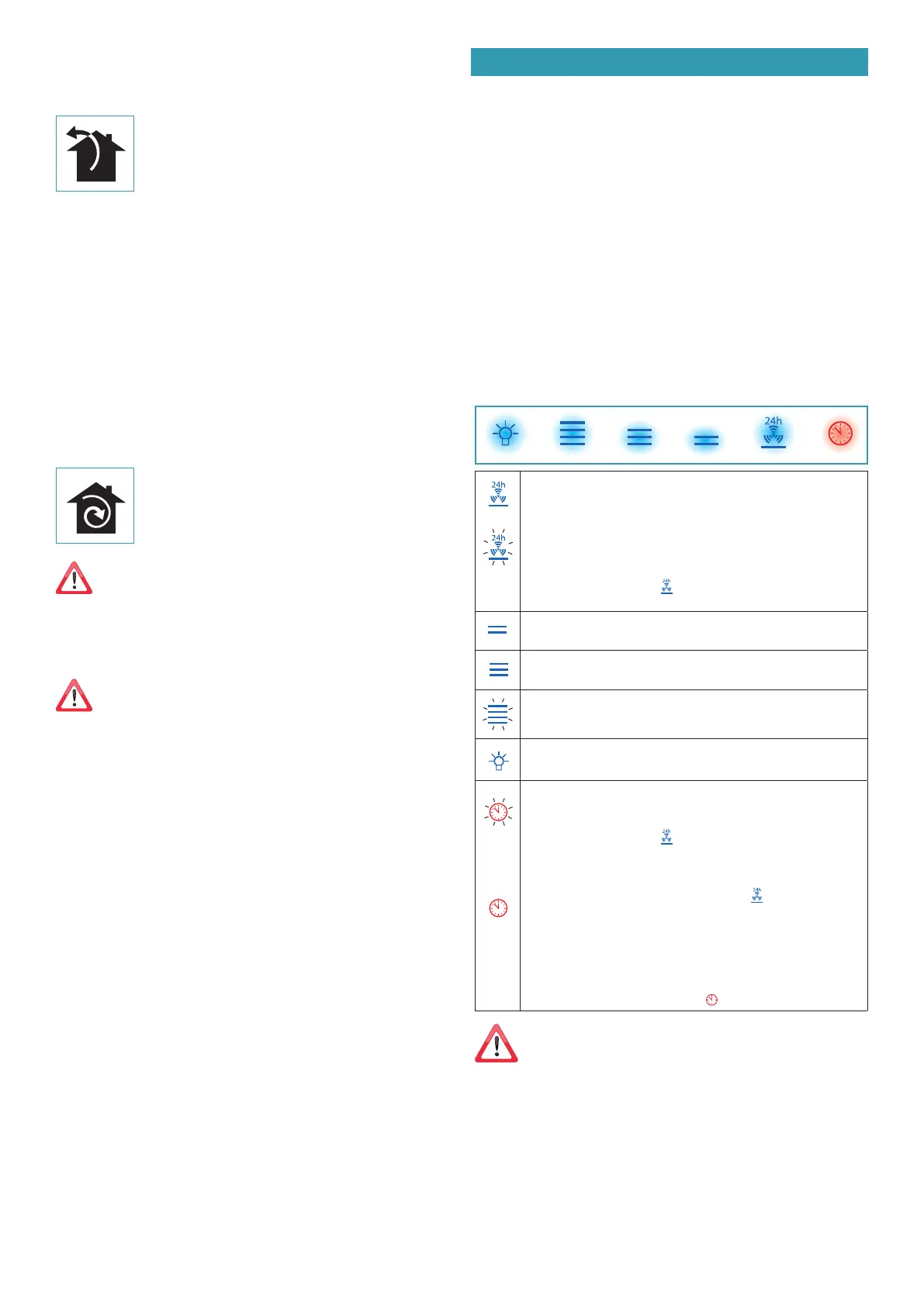 24h (1h ON -> 3h OFF -> 1h ON) Funktionen inaktiveras (röd lysdiod