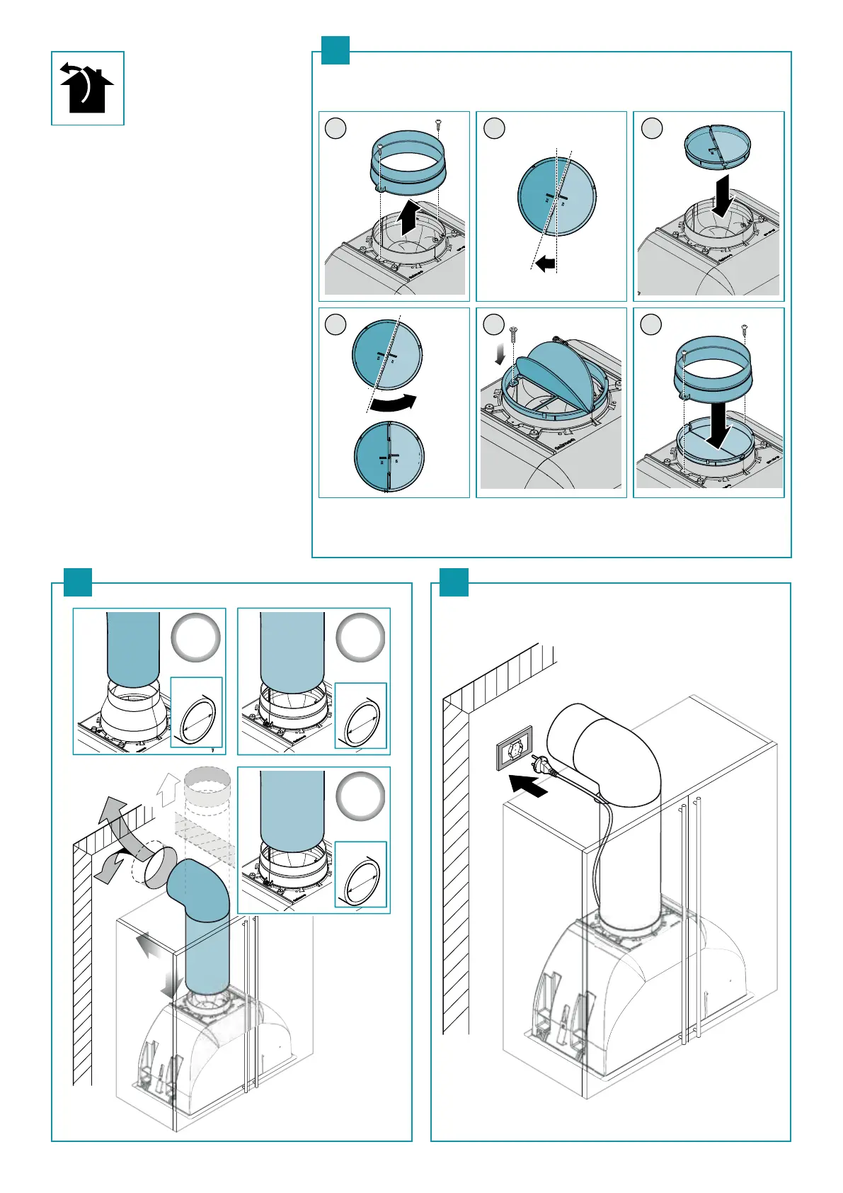 NL - Installatie keerklep (5), afzuigbuis (6) en