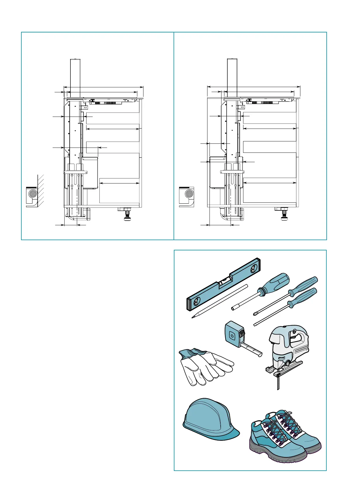 Installazione a parete o isola (2). Rotazione motore per versione isola