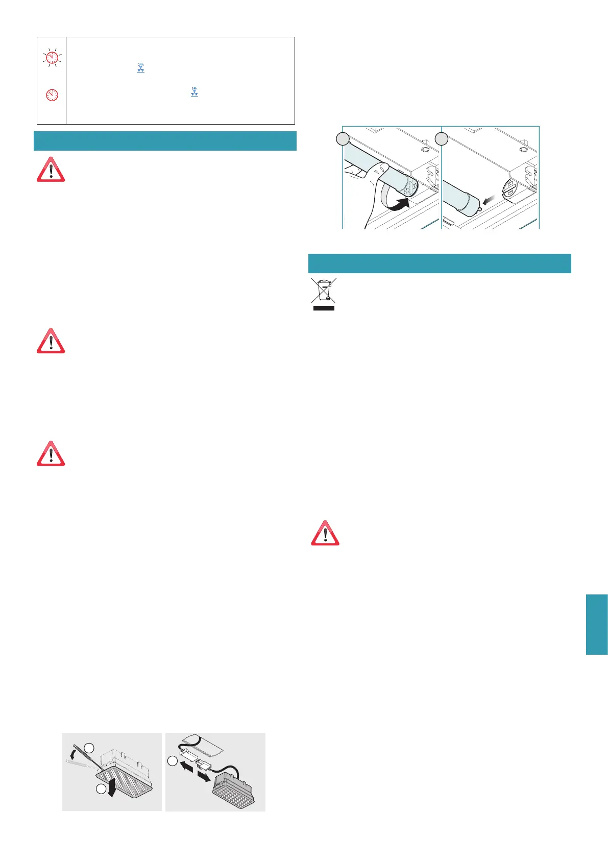 For udtagning og bisættelse af fedtfiltrene i metal, se monteringsvejledningen.