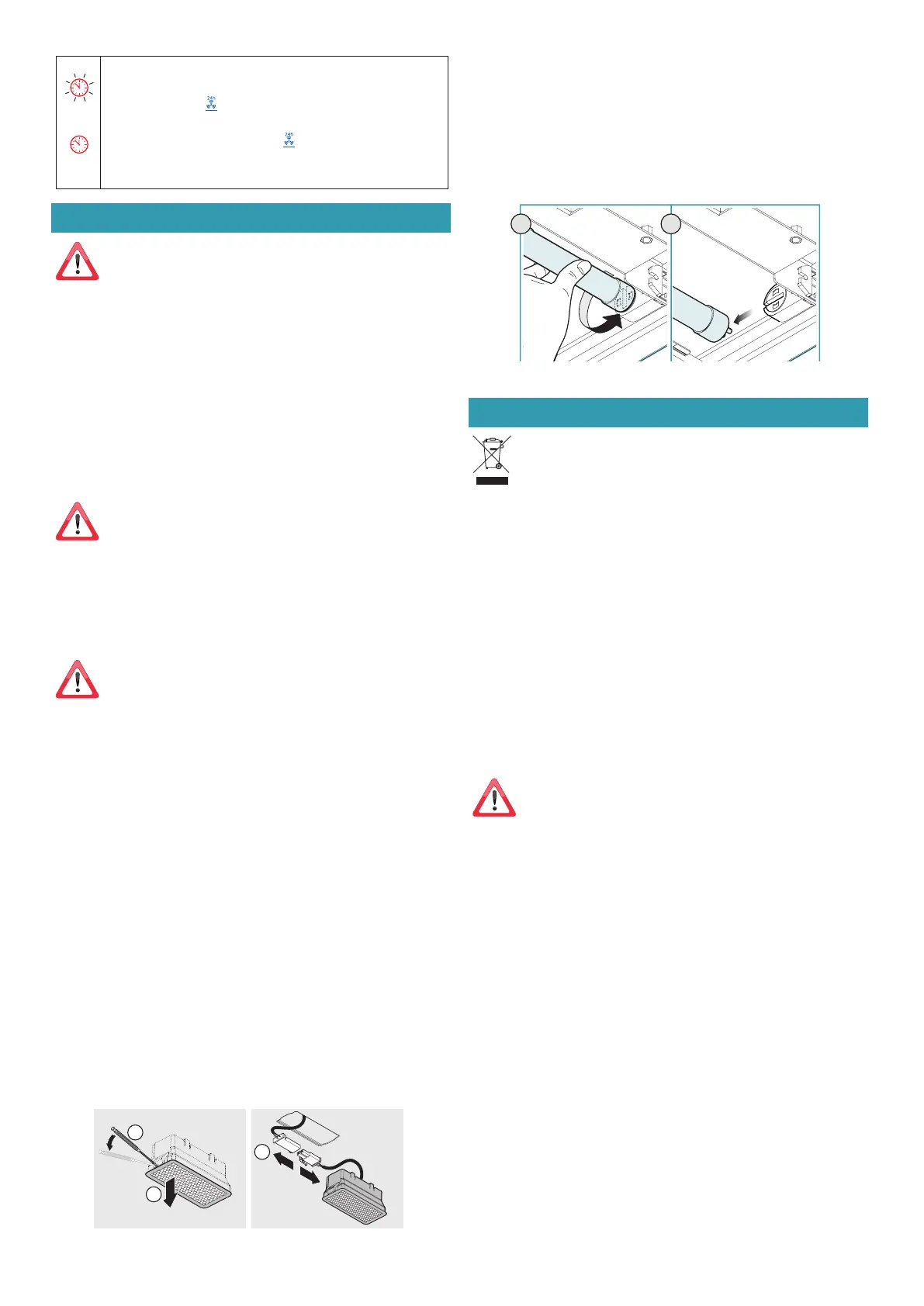 For uttrekking og innsetting av fettmetallfiltrene, se montasjeanvisningene.
