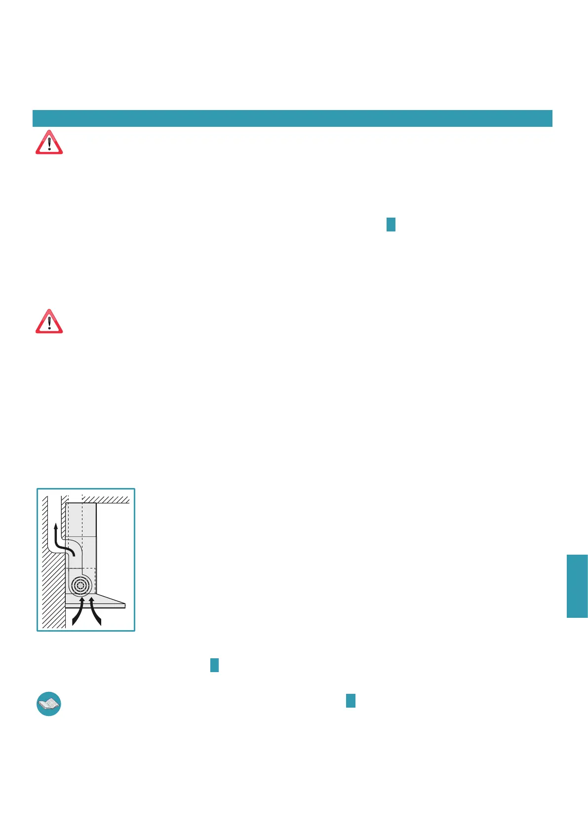 Forbind aldrig apparatet til udsugningskanaler med røg fra forbrænding (f.eks kedler, pejse osv...) og overhold alle de