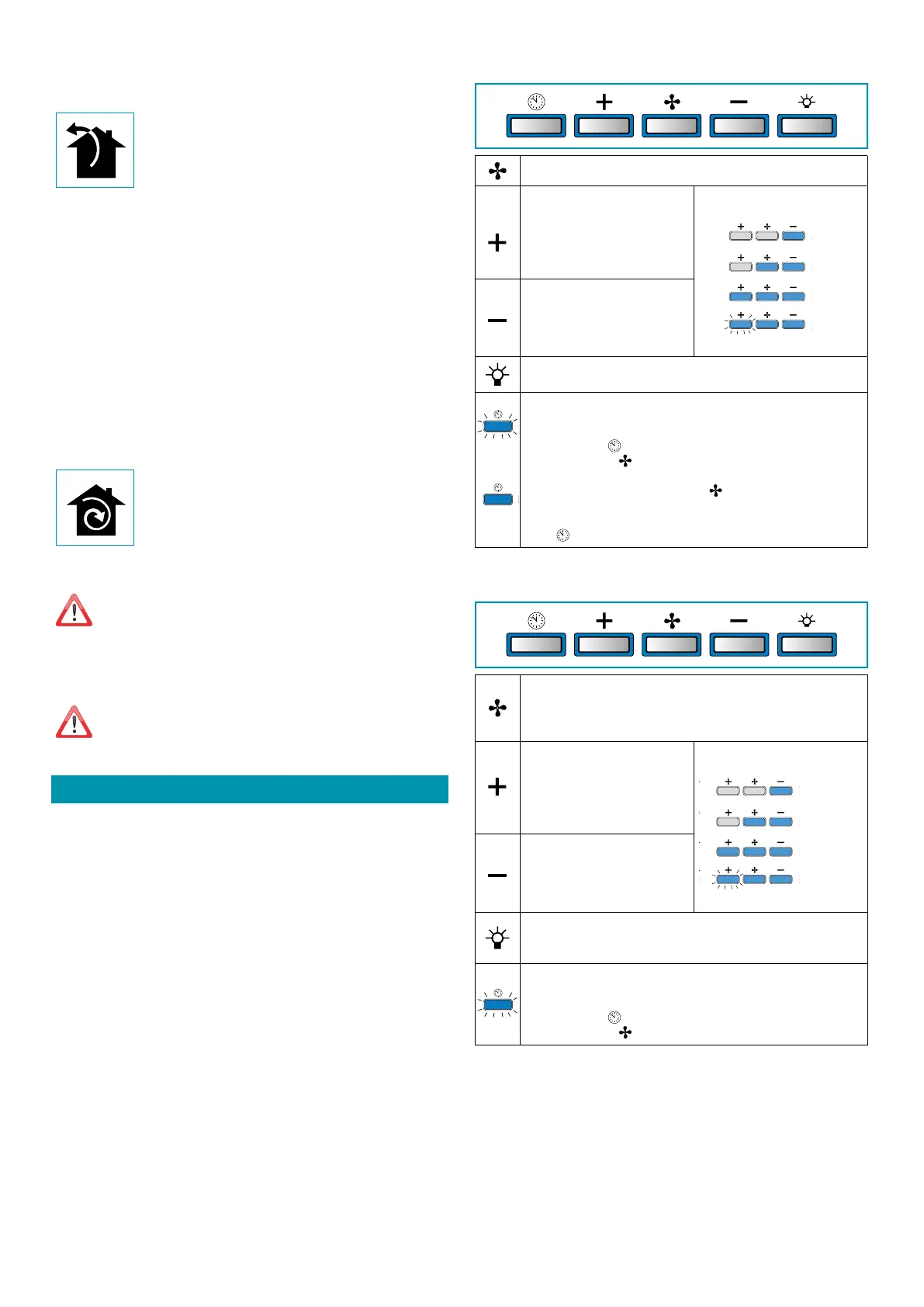 Switch on the hood at least one minute before starting to cook to direct fumes