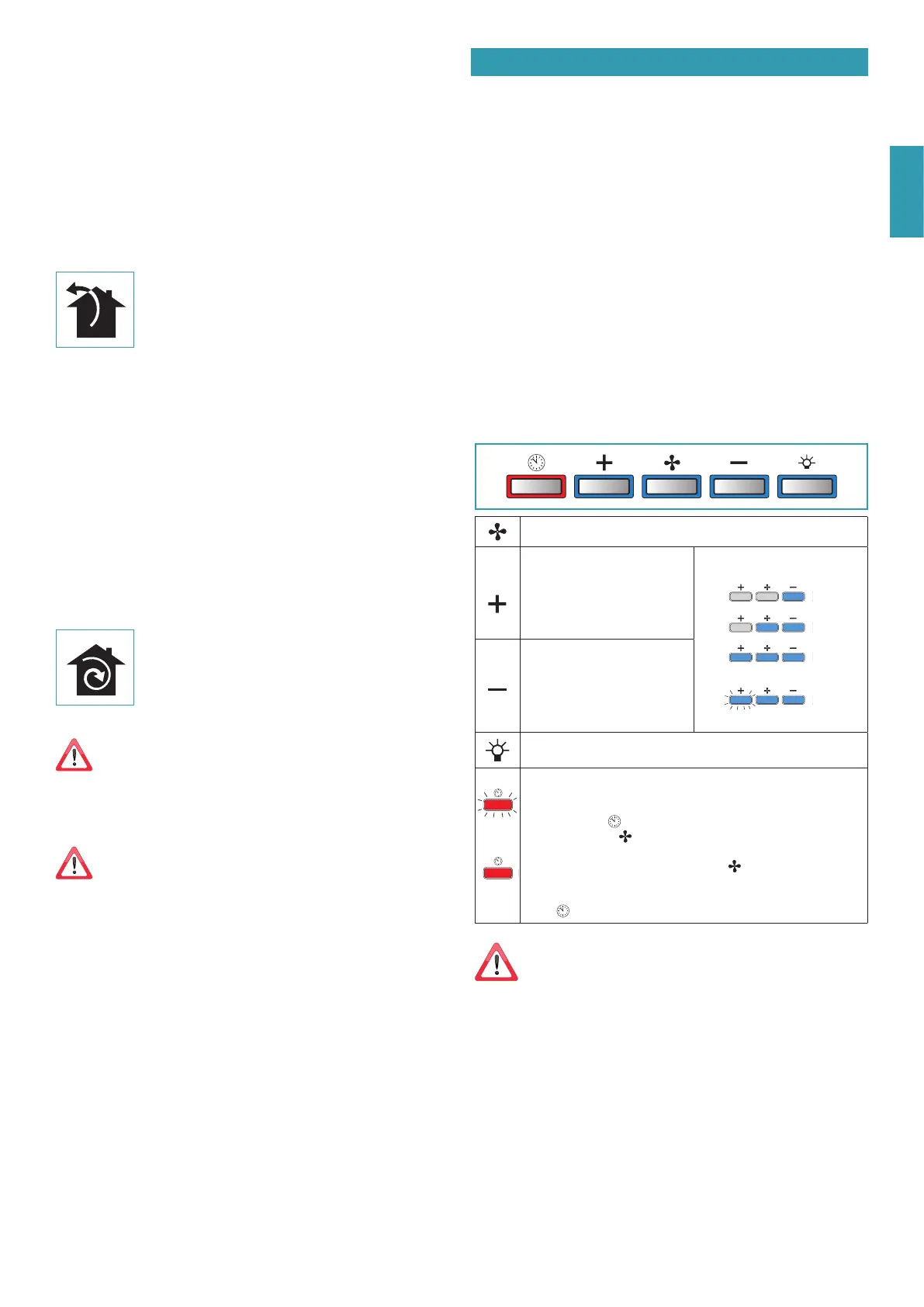 Switch on the hood at least one minute before starting to cook to direct fumes