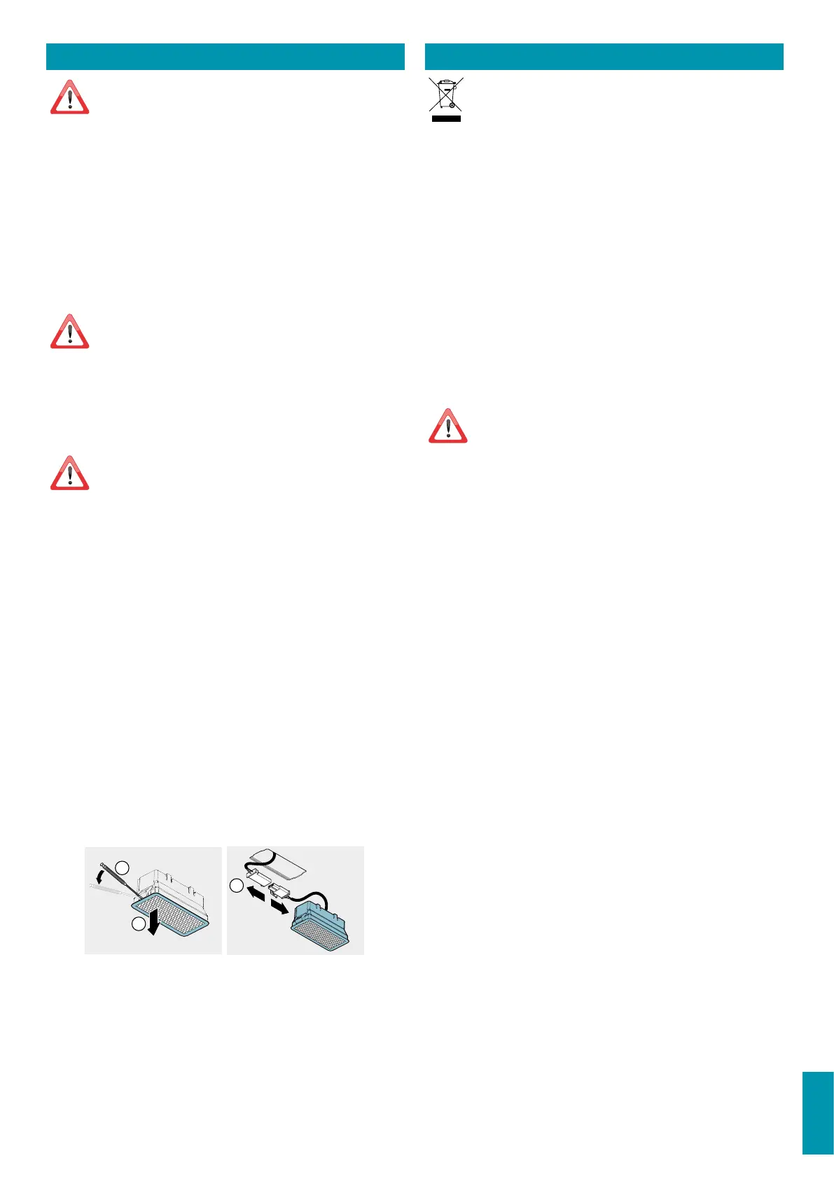 For uttrekking og innsetting av fettmetallltrene, se montasjeanvisningene.