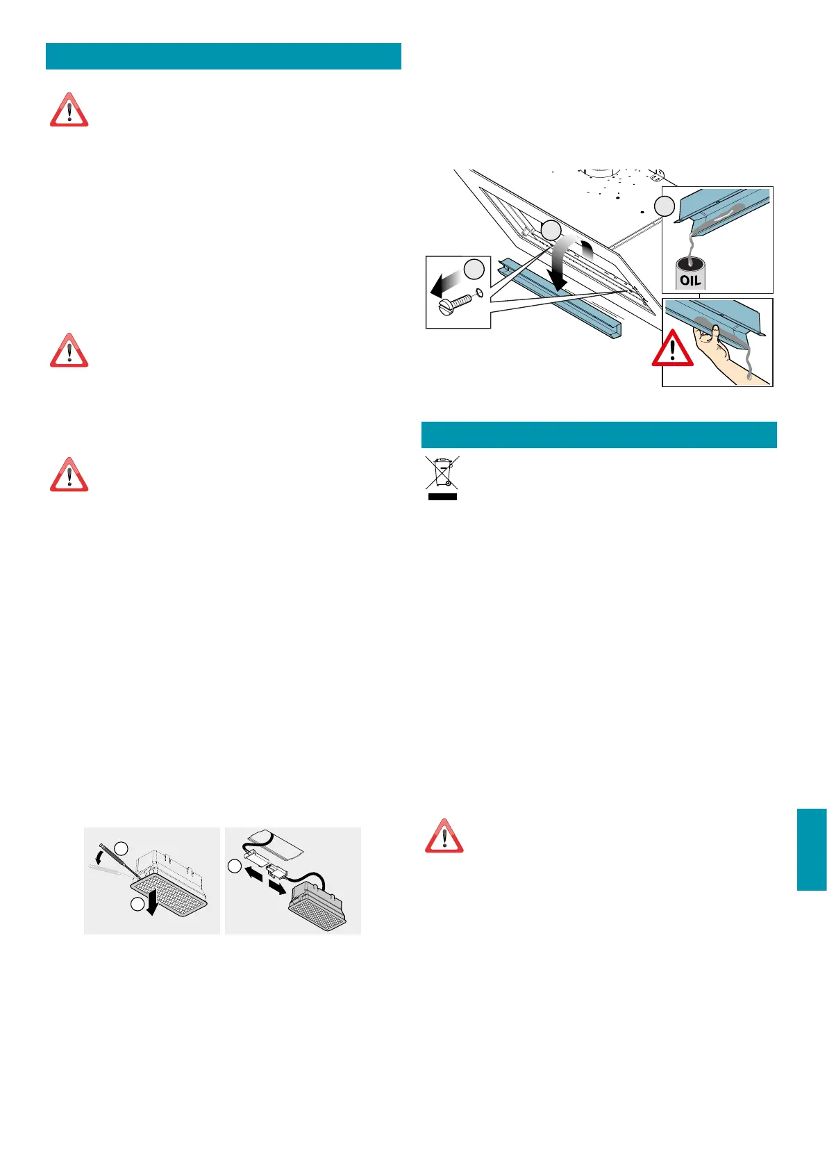 For udtagning og bisættelse af fedtltrene i metal, se monteringsvejledningen.