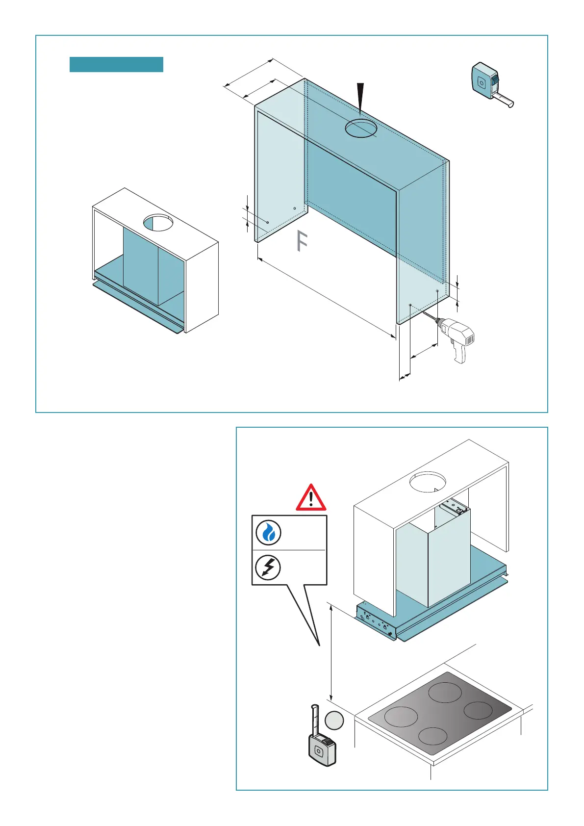 FR - Mesures pour l'installation. Fixation de la hotte.
