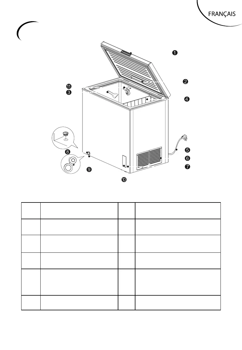4 Panier d’étagère 9 Pied de nivellement