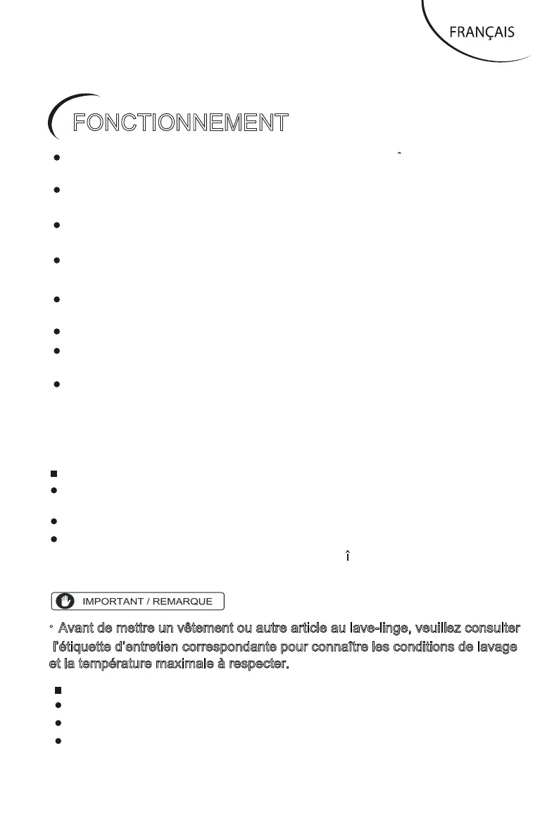 · Avant de mettre un vêtement ou autre article au lave-linge, veuillez consulter