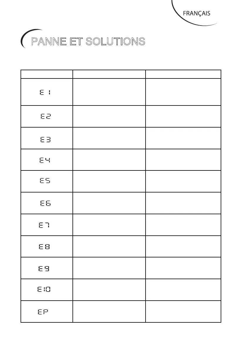 apparaître sur l'écran. Consultez le tableau ci-dessous pour essayer de résoudre