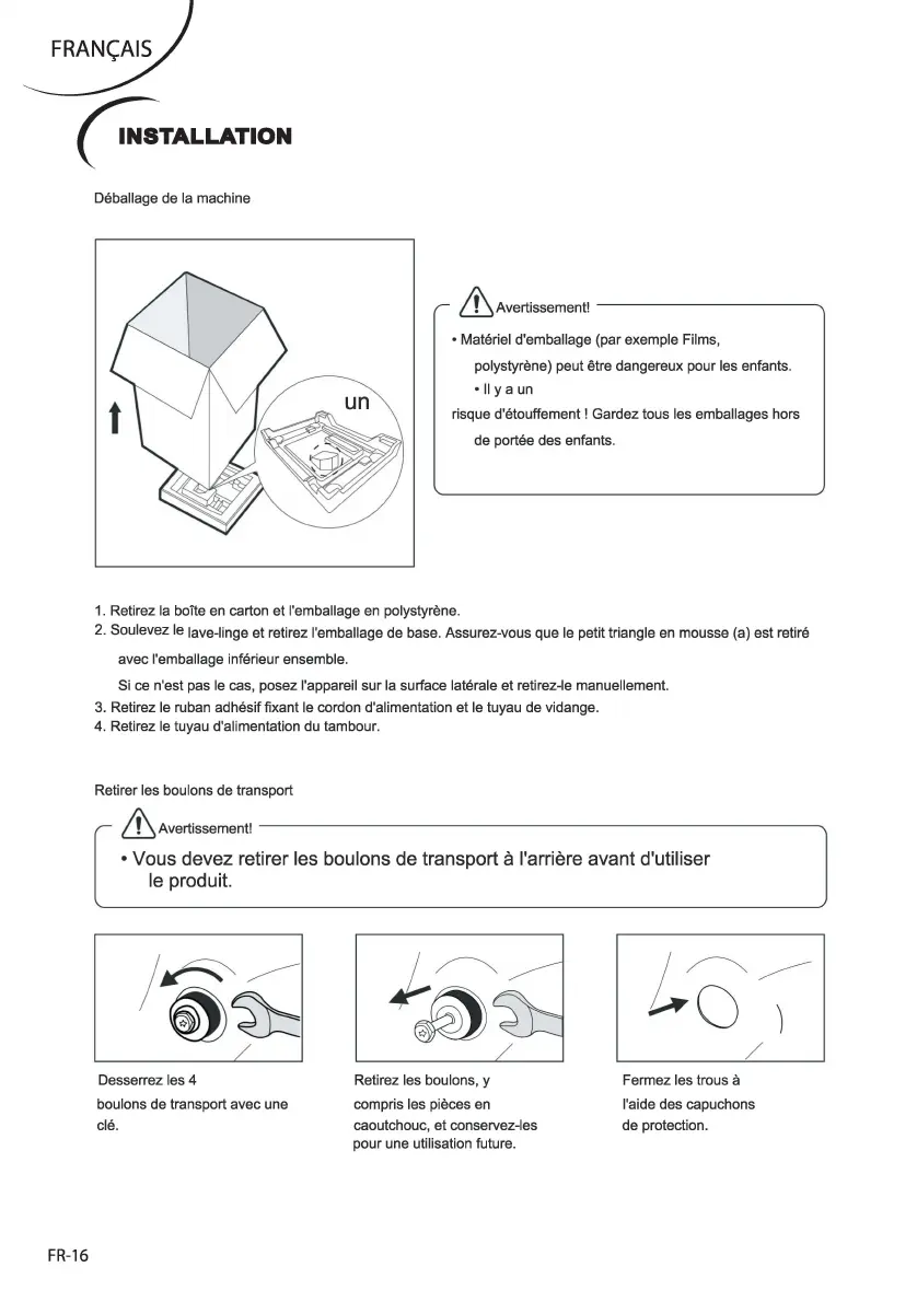 Retirer les boulons de transport